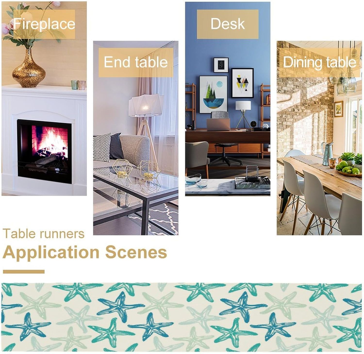 Starfish Plaid Table Flag Green Plaid and Marine Life Starfish Kitchen Table Flag Suitable for Birthday Party Restaurant Decoration Outdoor Picnic 13 * 108 Inch