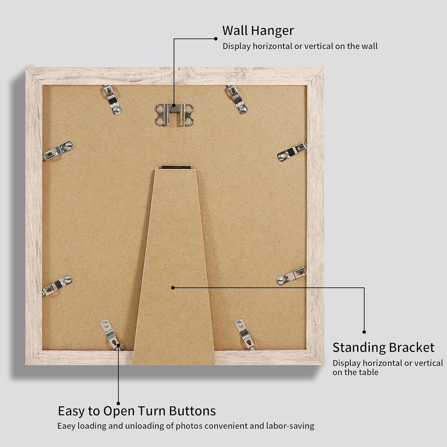• Multi Frames Collage Set: Includes 4 frames in the same size. Perfectly fits 10x10 inch pictures with mat or 12x12 inch without mat. The frame opening display size is 0.5 inches smaller than the photo size for secure mounting.