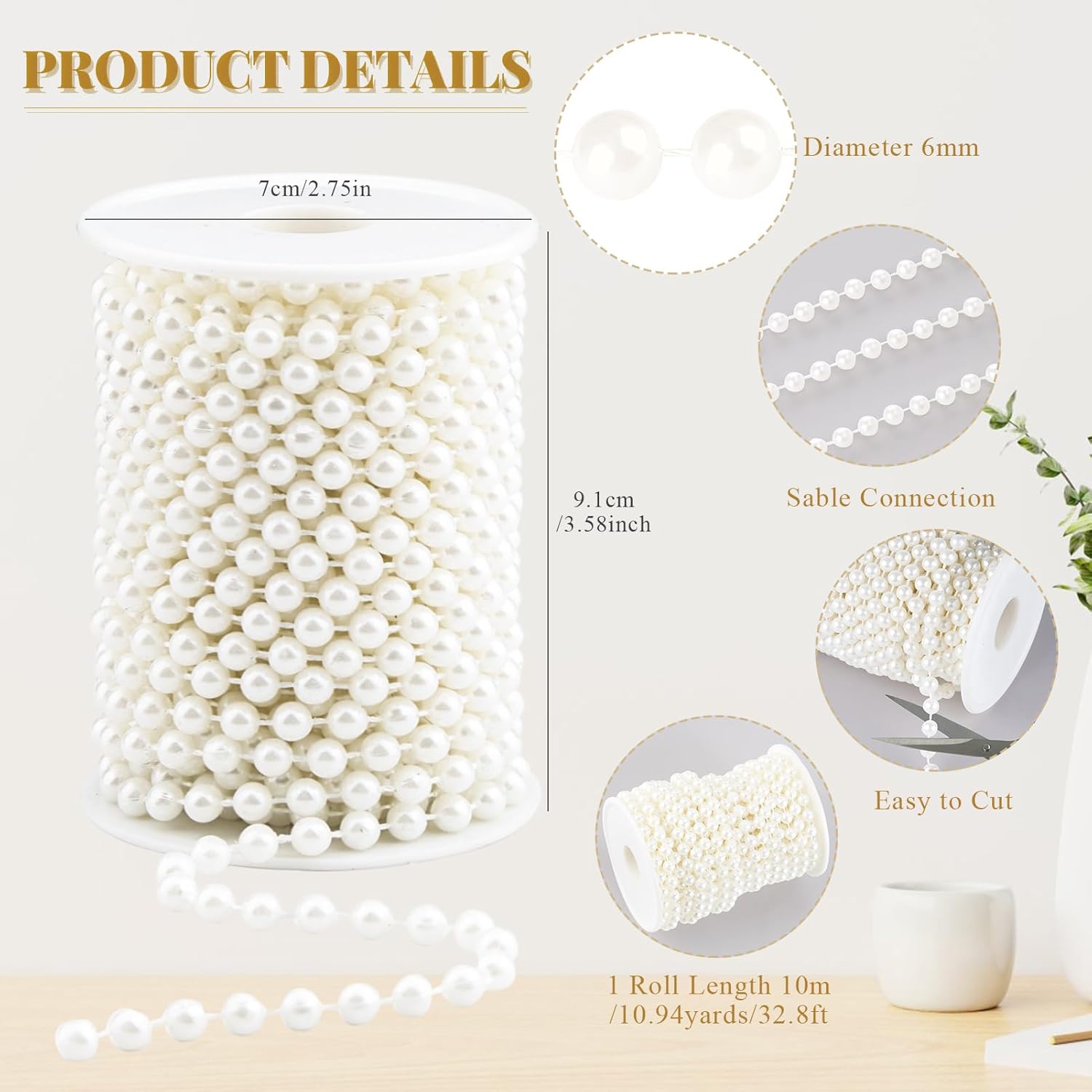 • Perfect Pearl Decorations: pearl garland is perfect for wedding party, table centerpieces, bridal bouquets, wedding wreaths, beaded curtains, wedding backdrops, Christmas tree decorations, craft projects and more.