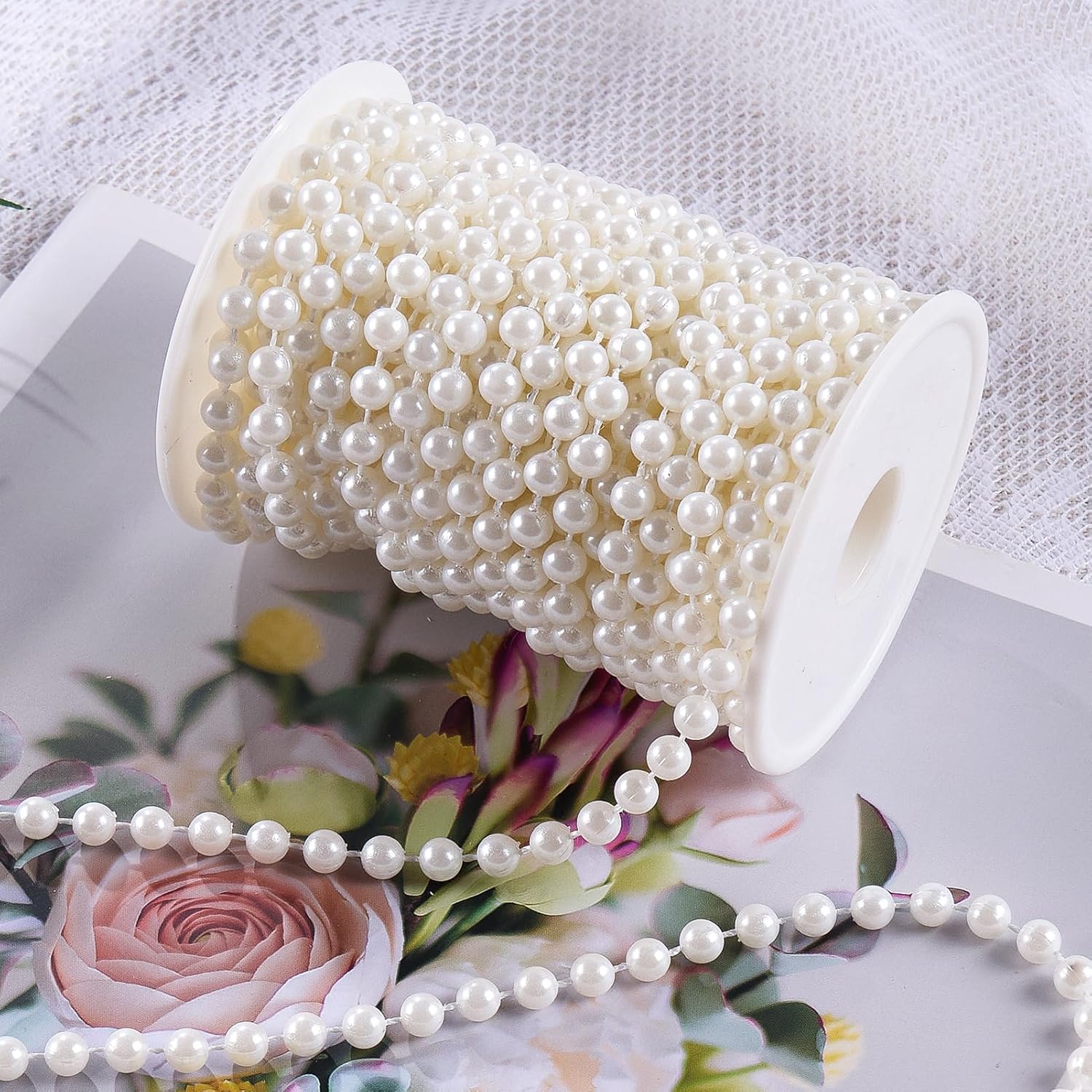 Craft String Pearls Bead 6MM, 33 Feet Ivory Fake Pearl Garland Beads Trim for Wedding Christmas Tree Decorations DIY