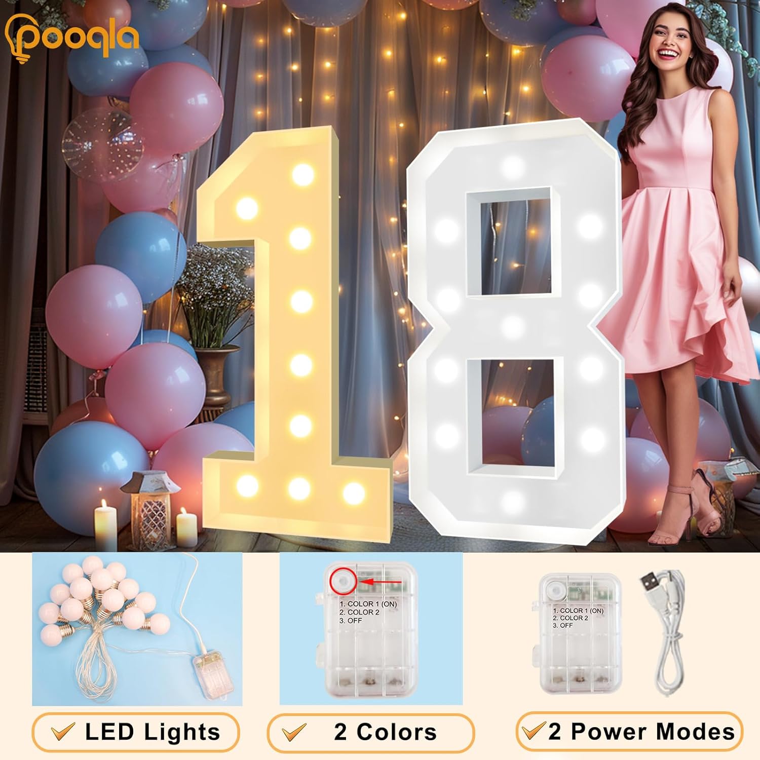 • 2 Colors Lighted Marquee Numbers: Warm White & Cool White,you can choose the color according to your needs. With a switch on the battery box for controlling the color of lights. Good addition for birthday party or wedding decoration