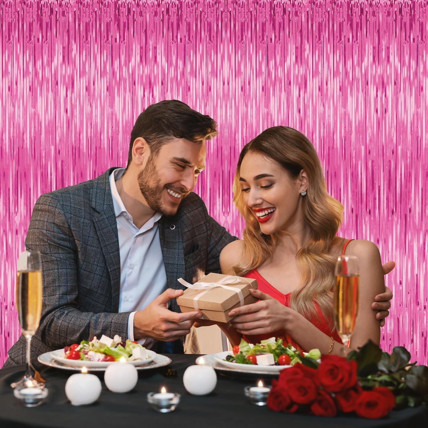 3 Pack Pink Tinsel Backdrop Decorations, Foil Fringe Curtains, Bachelorette & Graduation Party Decorations, Photo Booth Streamer Backdrop, Pink Theme