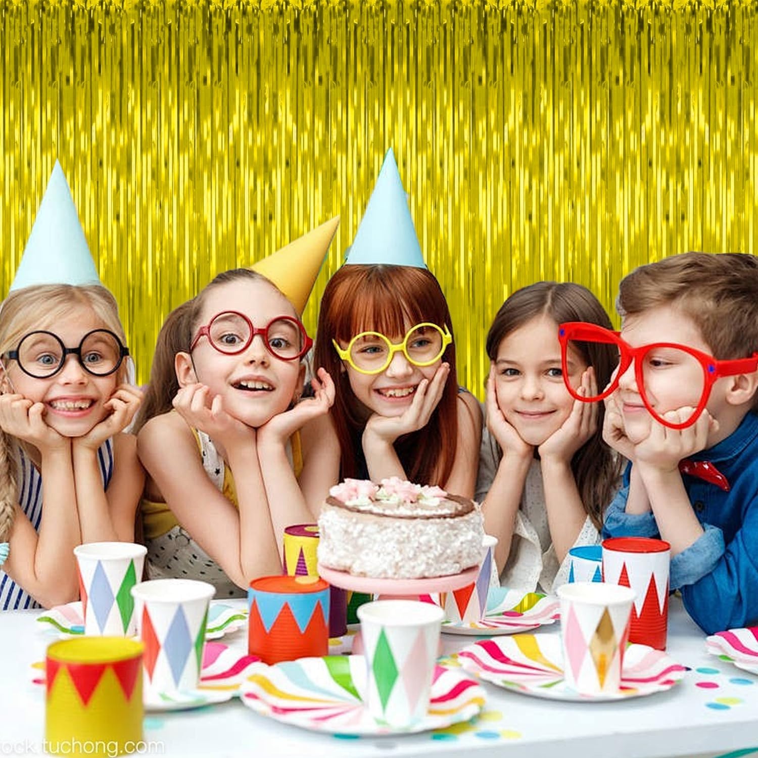 • Gold Streamers Material:This Gold foil curtain backdrop is made of tinsel. Metallic streamers are available in a variety of beautiful colors with a shiny and reflective surface that creates an eye-catching and mesmerizing effect. Unfold it and then enjoy your glittering party.