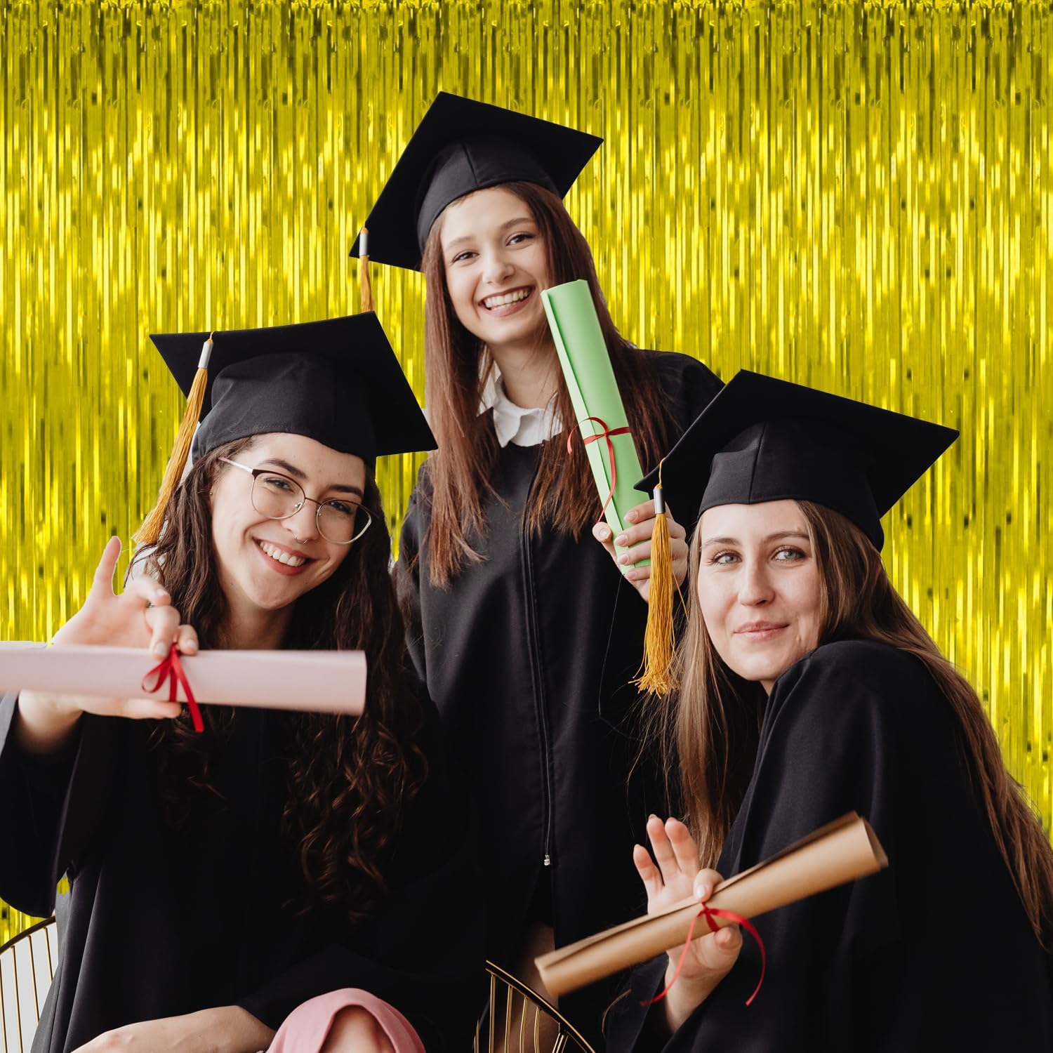 • Easy To Assemble: This classy gold shimmer wall backdrop curtain comes with an adhesive strip at the back so it's easy to hang on the wall. This gold foil curtain decorations could stay hanging for days. Also the cut of the gold foil curtain backdrop is pretty wide, so it won't easily strip down. These gold fringe curtain will surely transform your place into a classy place for gold party decorations, gold birthday decorations or graduation decorations class of 2025.