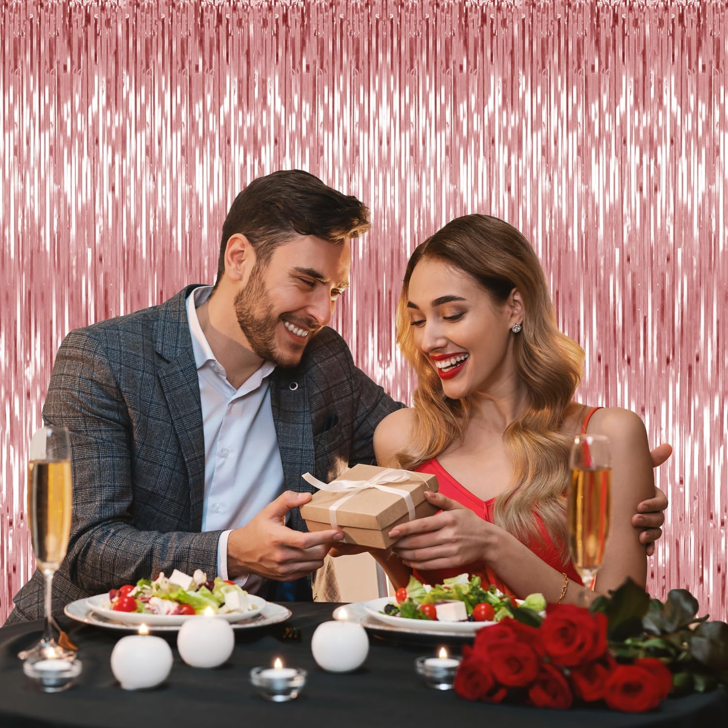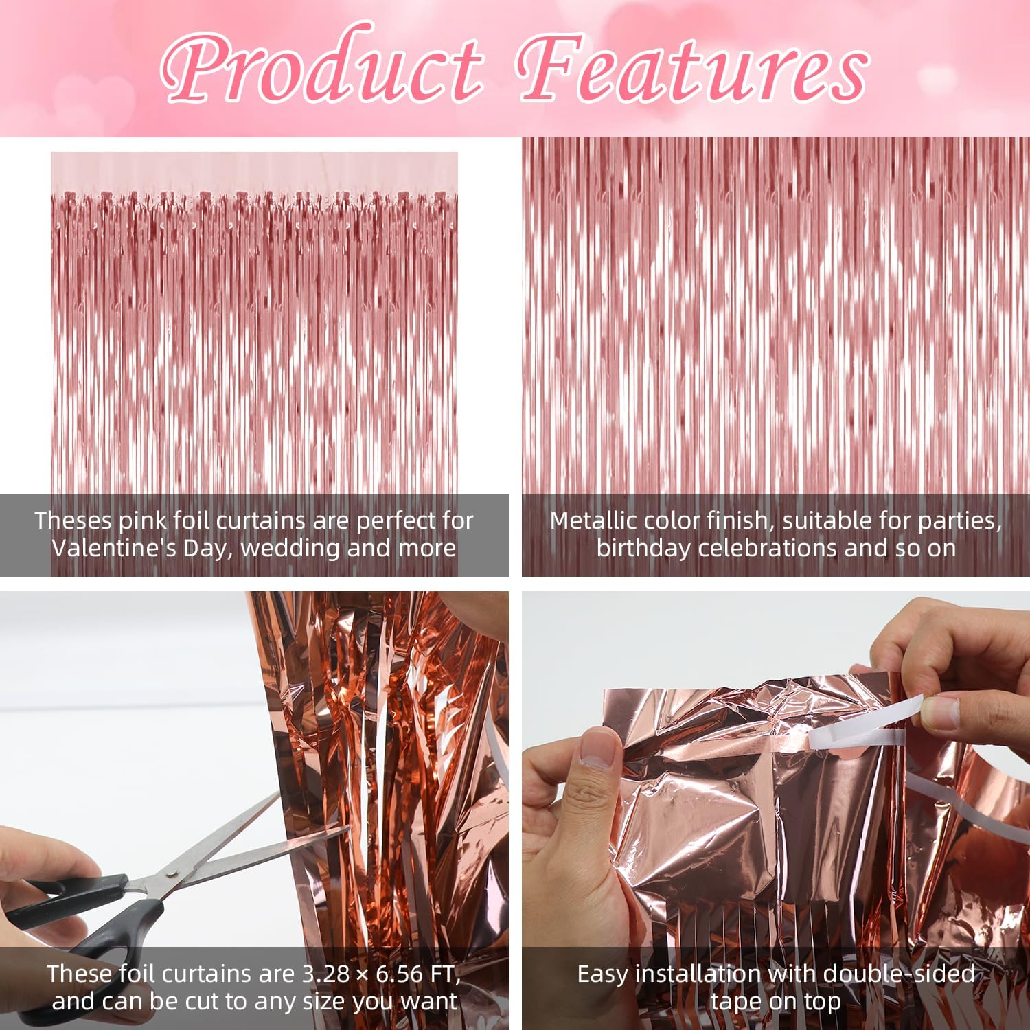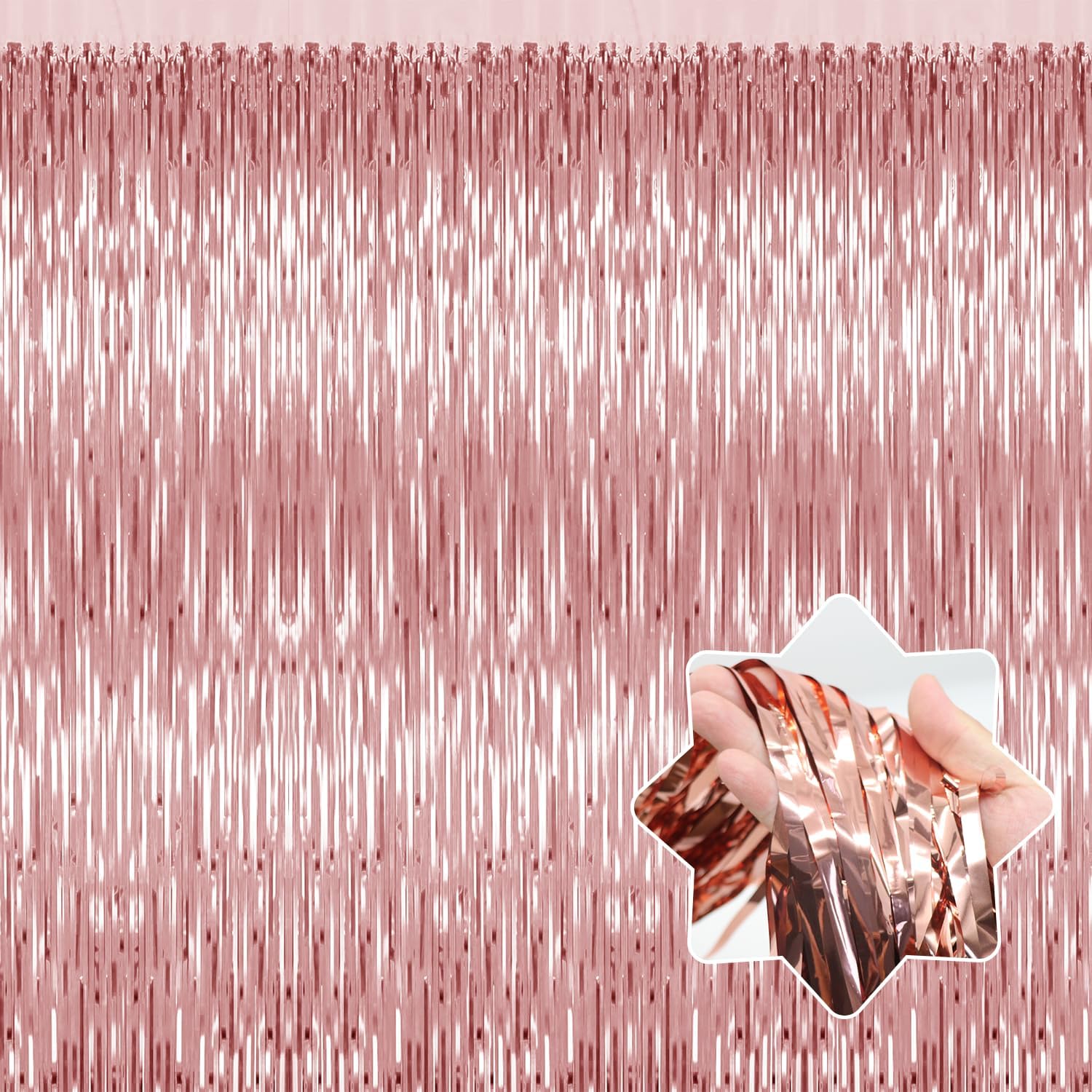 • Rose Gold Birthday Backdrop:5 packs of foil fringe curtains, the size of the foil curtain is 3.28 ft x 6.56 ft.It's long enough to fit any occasion. Please do not stick the foil curtain on uneven or stained walls to prevent it from falling off.