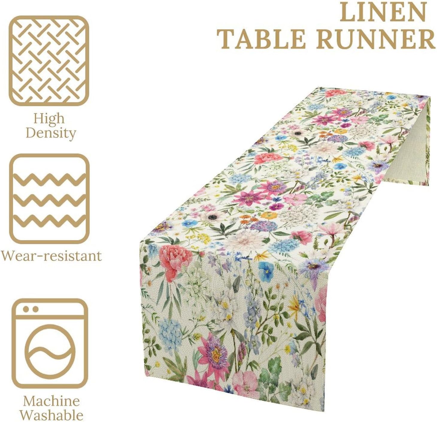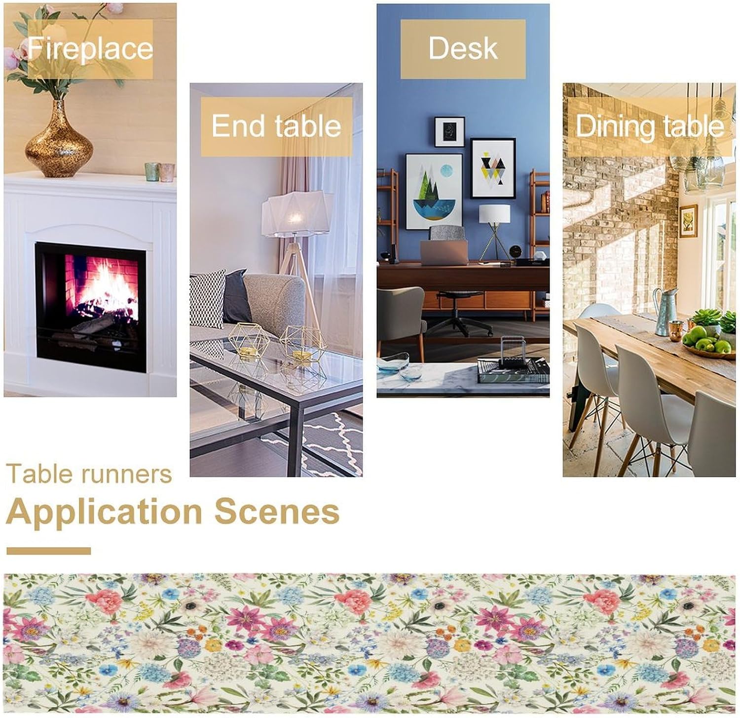 Floral Table Runner Watercolor Peony Rose Flower Kitchen Table Decoration for Indoor and Outdoor Wedding Party 13x60 Inch