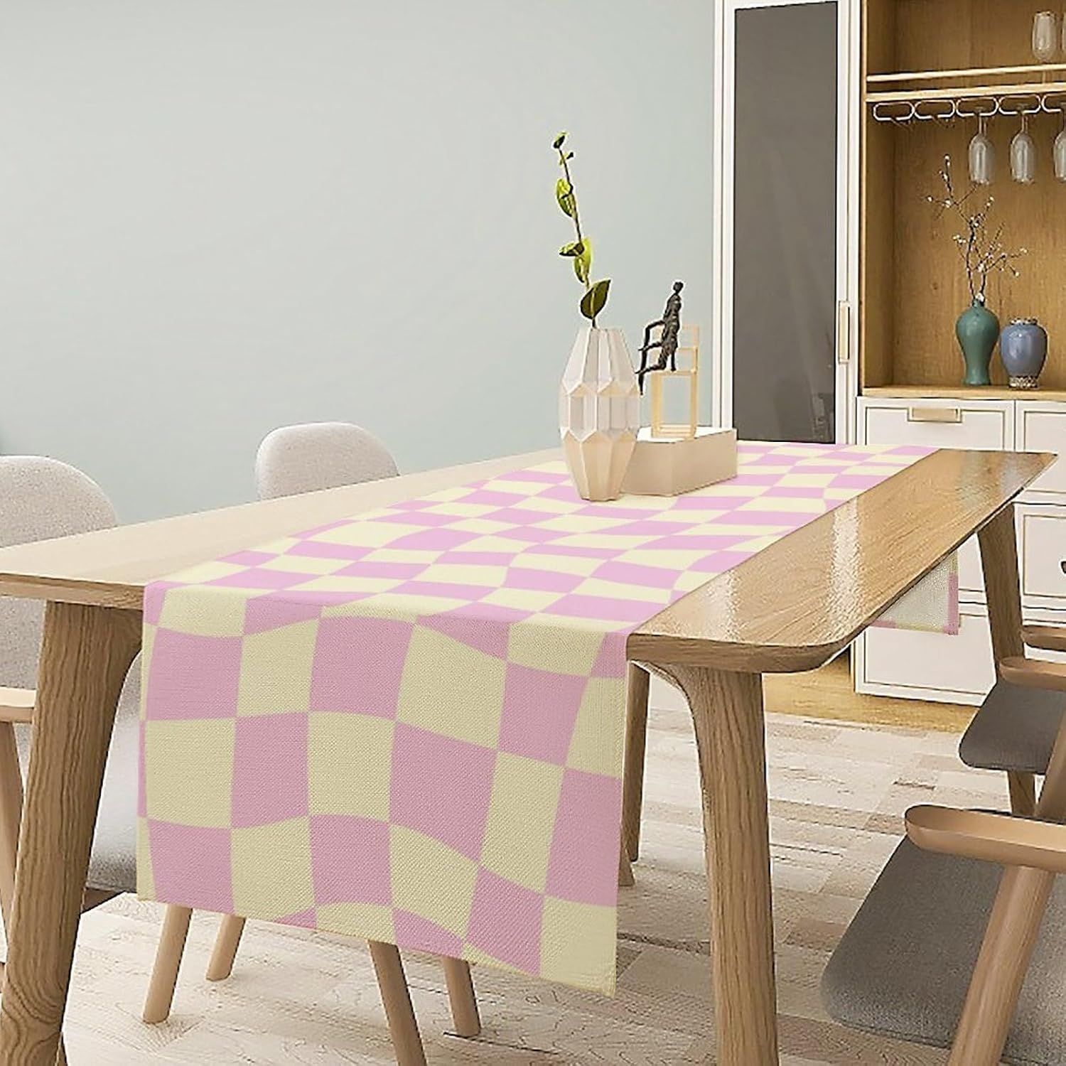Hippie Table Runner Retro Geometric Square Purple Grid 60s70s Style Kitchen Restaurant Decoration for Indoor and Outdoor Wedding Party Table Runner 13x60 Inch
