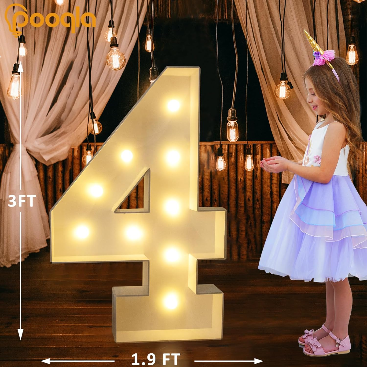 Pooqla 3FT Light Up Marquee Numbers, LED Large Lighted Marquee Numbers for Party Decoration, Giant Mosaic Number for Balloon 4th 14th 40th Birthday Decoration, Cool White and Warm White 4