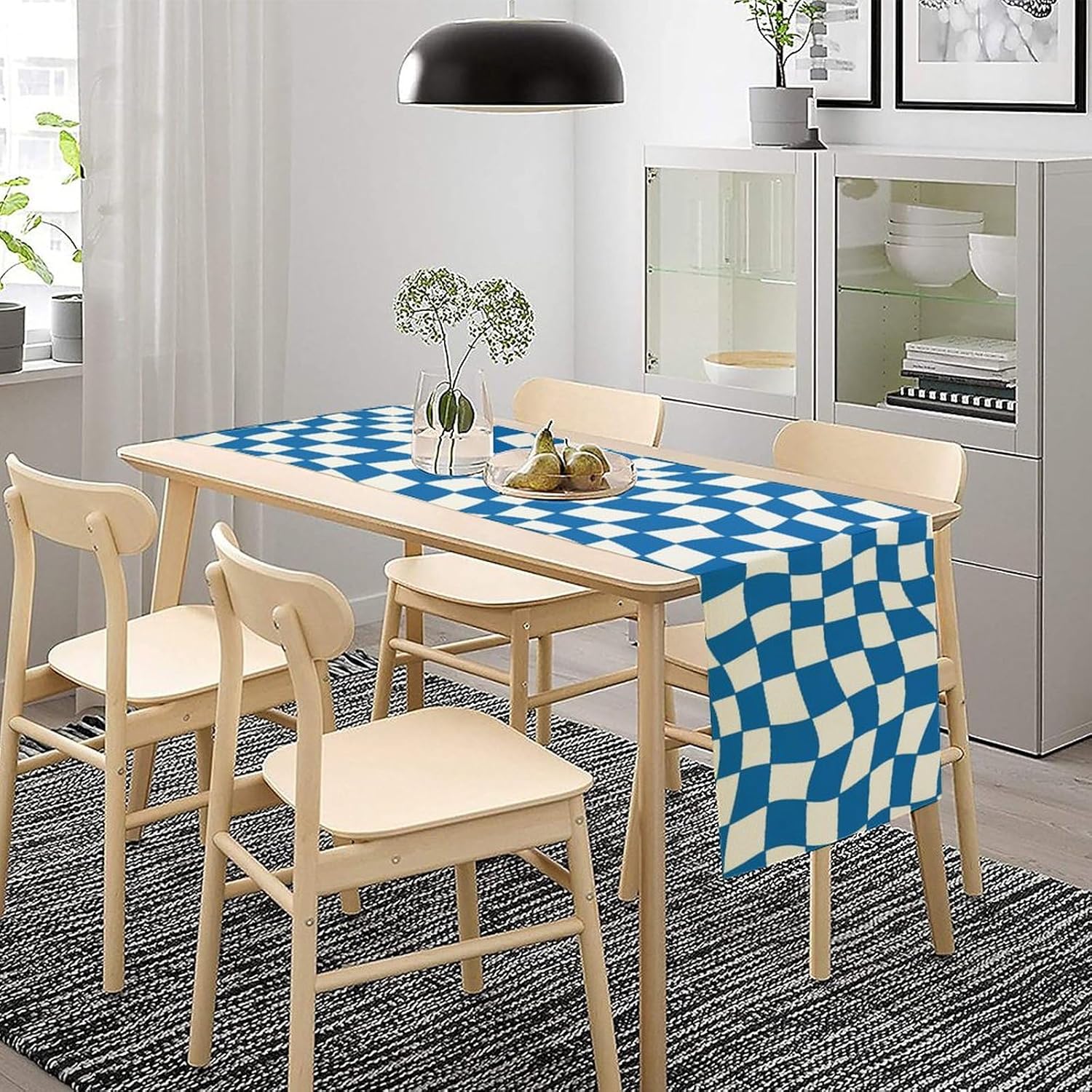 Table Flag Retro Plaid 60s70s Blue Plaid Table Flag Kitchen Restaurant Decoration Suitable for Indoor and Outdoor Festival Home Wedding Party Table Flag 13x120