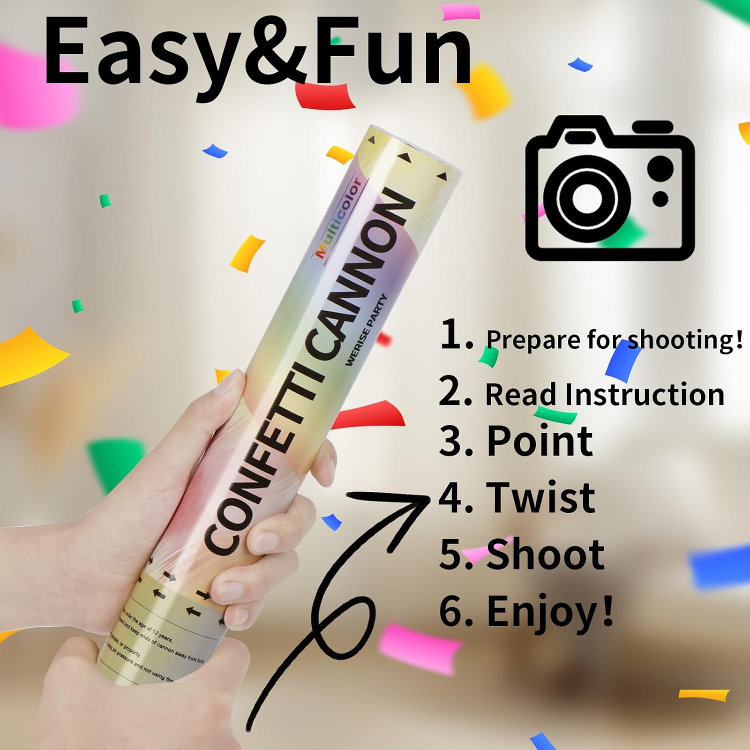 • 【𝐆𝐔𝐀𝐑𝐀𝐍𝐓𝐄𝐄𝐃 π“πŽ π–πŽπ‘πŠ – π™π„π‘πŽ 𝐃𝐔𝐃𝐒】The confetti cannon is pressure-tested through 1,000 twist cycles, guaranteeing a flawless 20 feet burst the moment you twistβ€”zero misfires, maximum cheers