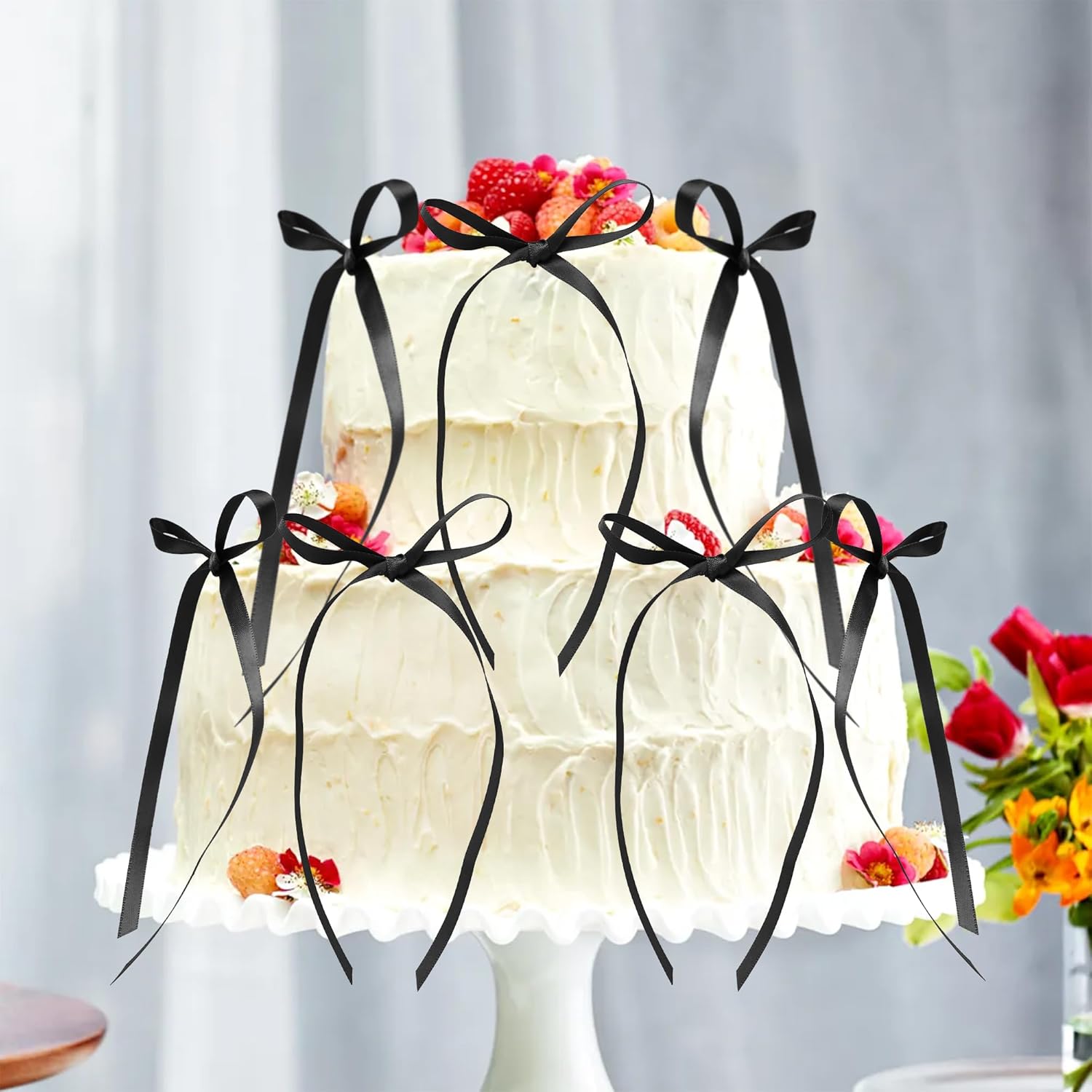 Ephlyn 30Pcs Bow Cupcake Toppers Valentine's Bowknot Ribbons Coquette Bow High Footed Cup Balloon Wall Party Decorations Cake Dessert Picks Birthday Wedding Party Supplies Black