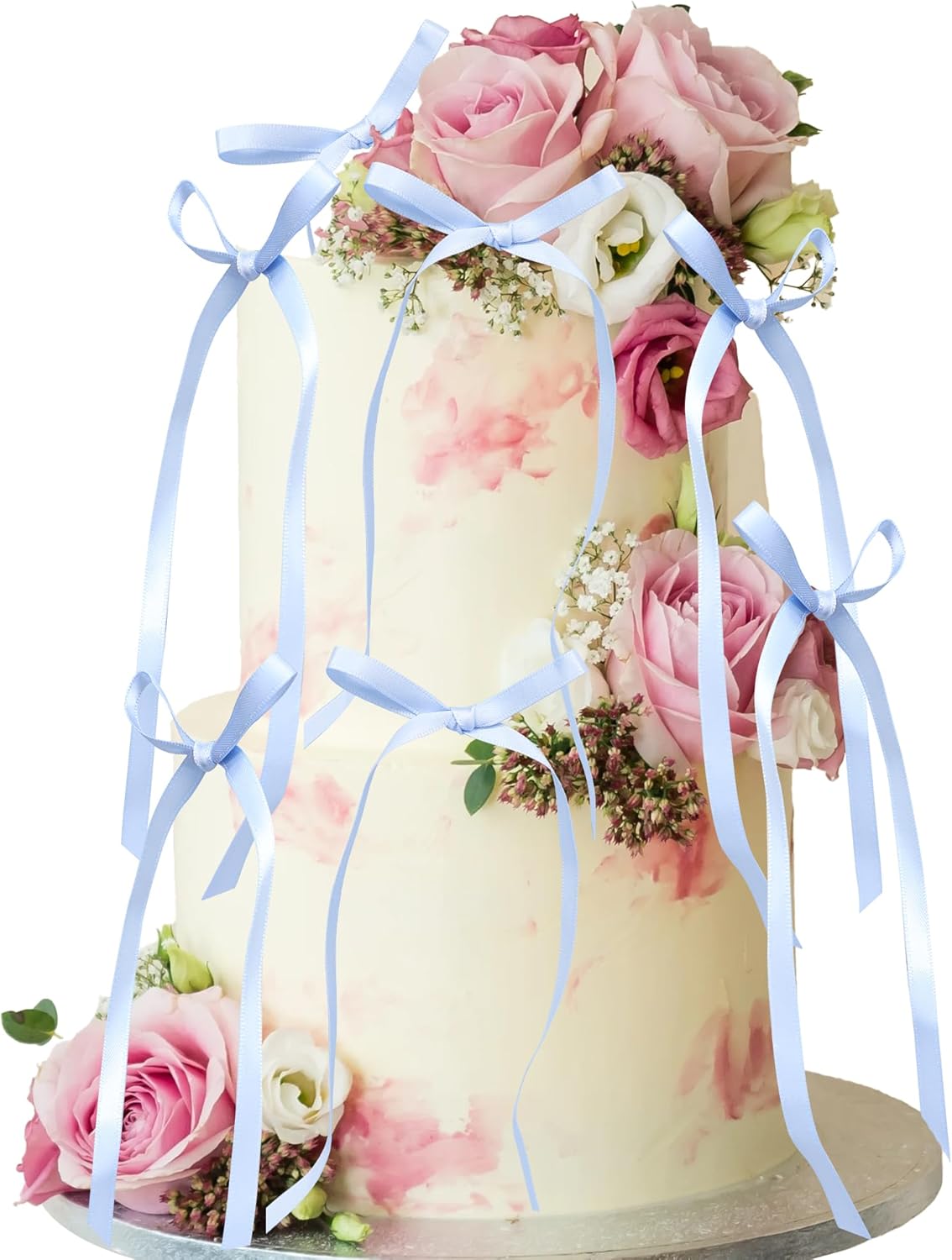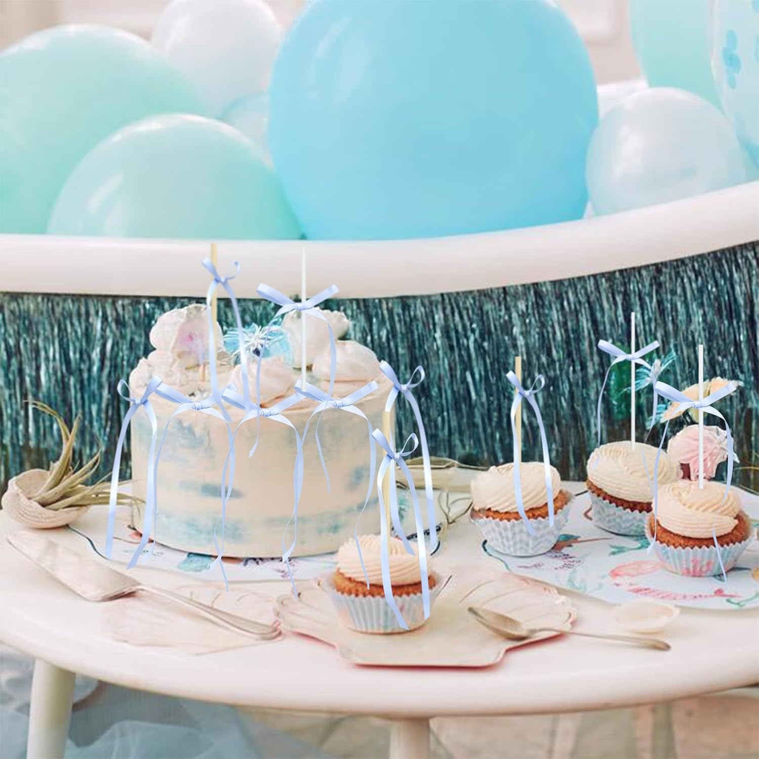 Ephlyn 30Pcs Bow Cupcake Toppers Valentine's Bowknot Ribbons Coquette Bow High Footed Cup Balloon Wall Party Decorations Cake Dessert Picks Birthday Wedding Party Supplies Blue