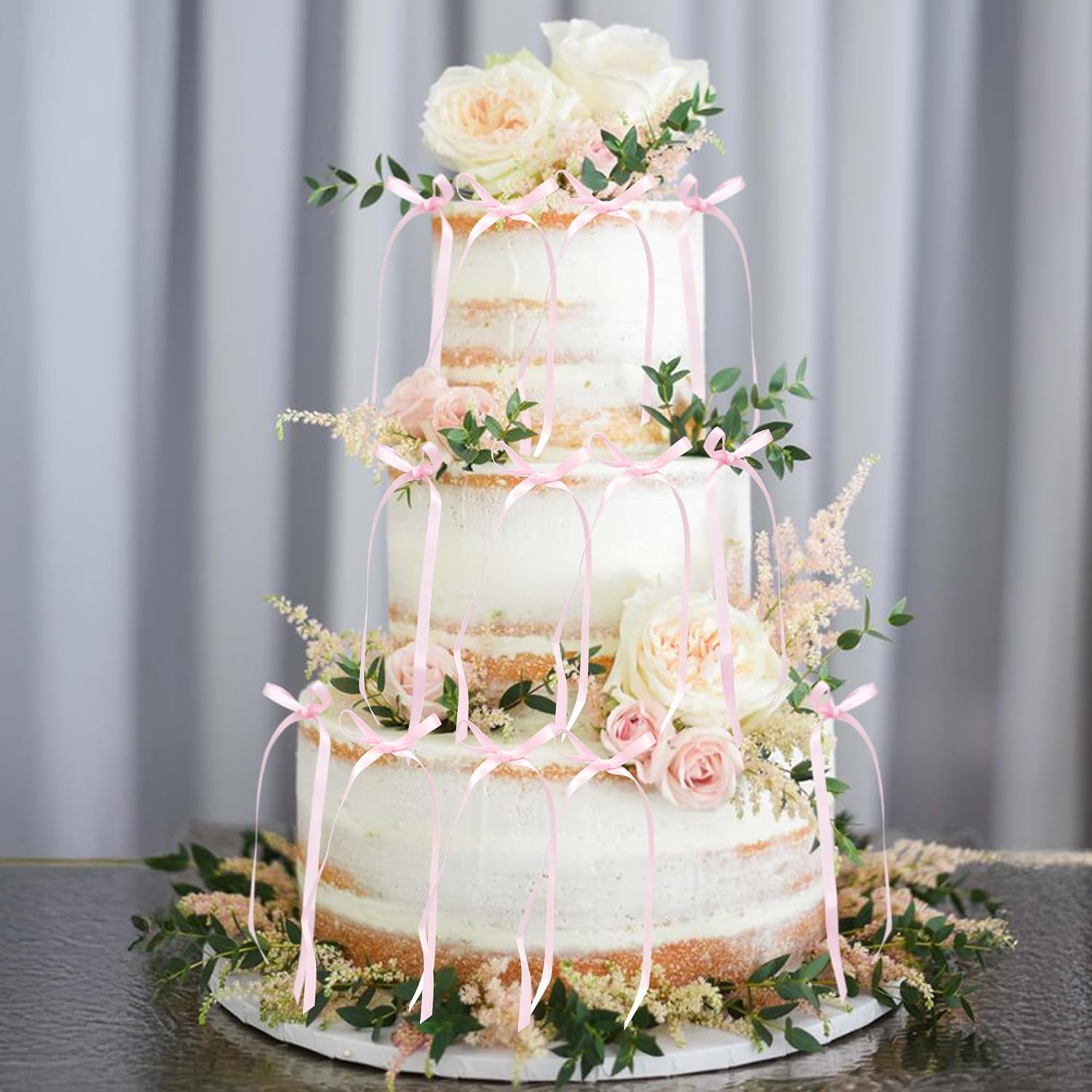 Ephlyn 30Pcs Bow Cupcake Toppers Valentine's Bowknot Ribbons Coquette Bow High Footed Cup Balloon Wall Party Decorations Cake Dessert Picks Birthday Wedding Party Supplies Pink