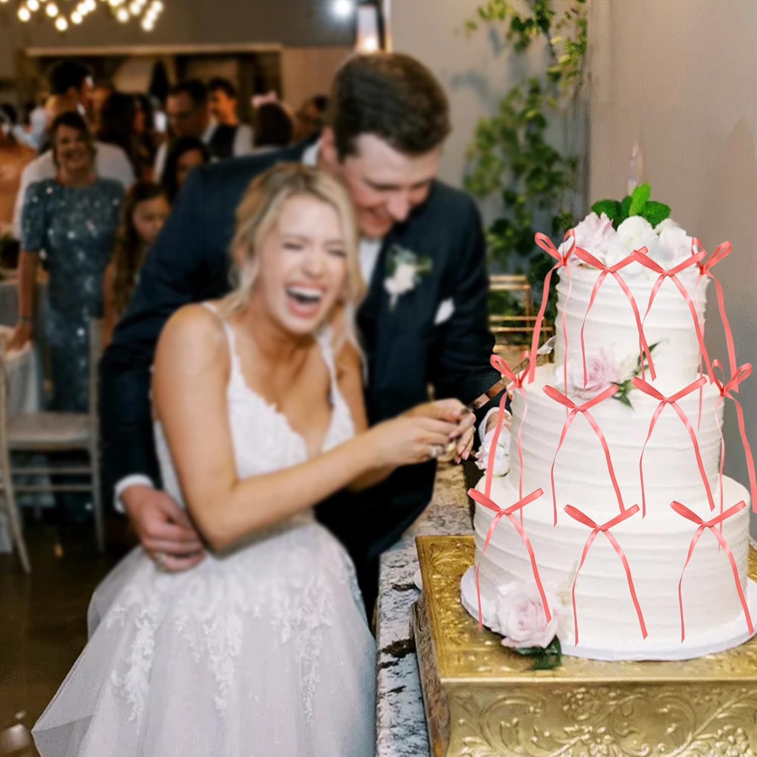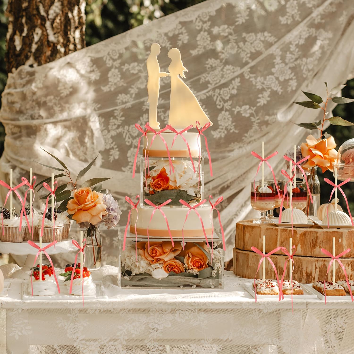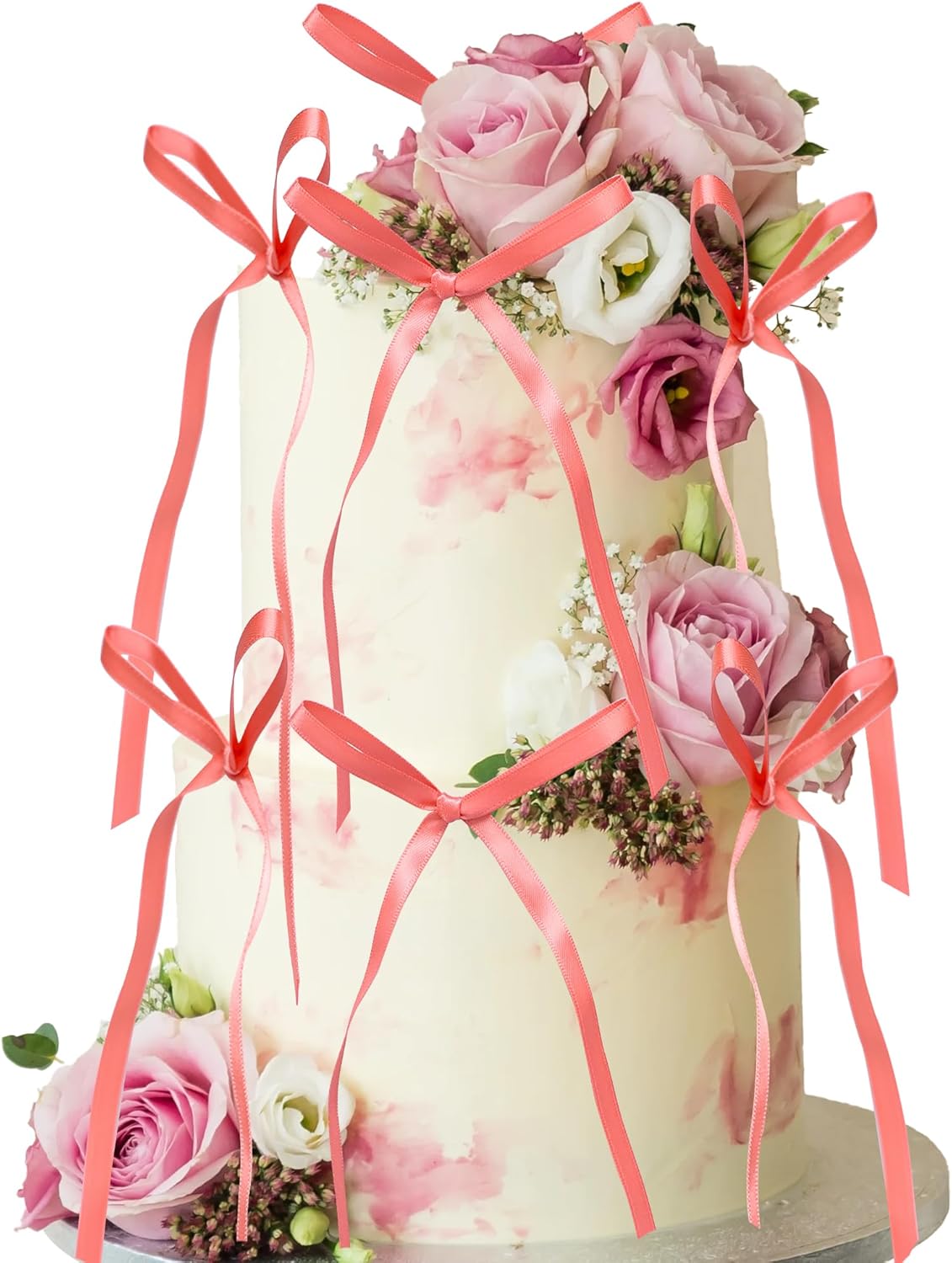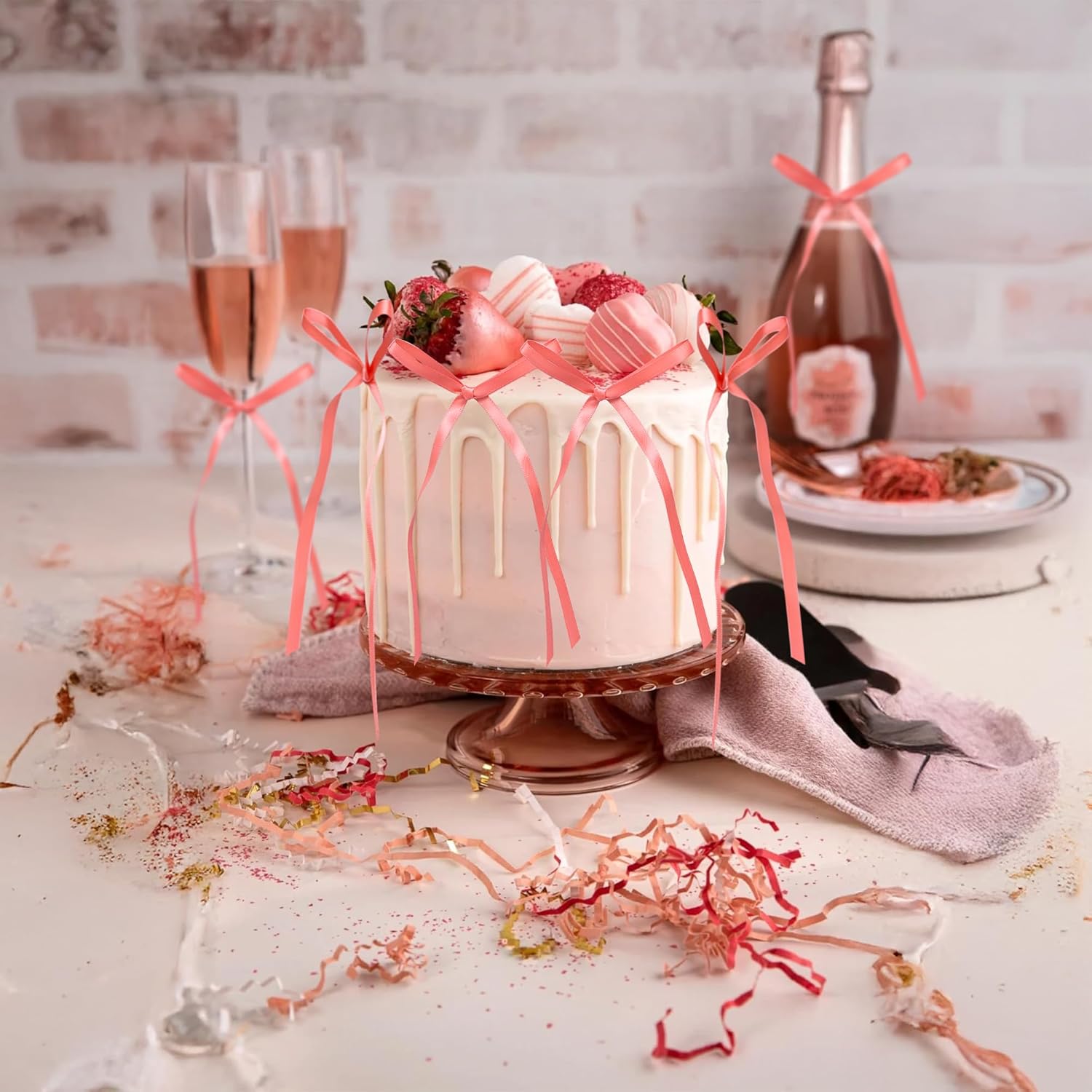 Ephlyn 30Pcs Bow Cupcake Toppers Valentine's Bowknot Ribbons Coquette Bow High Footed Cup Balloon Wall Party Decorations Cake Dessert Picks Baby Girl Birthday Wedding Party Supplies Peach Pink