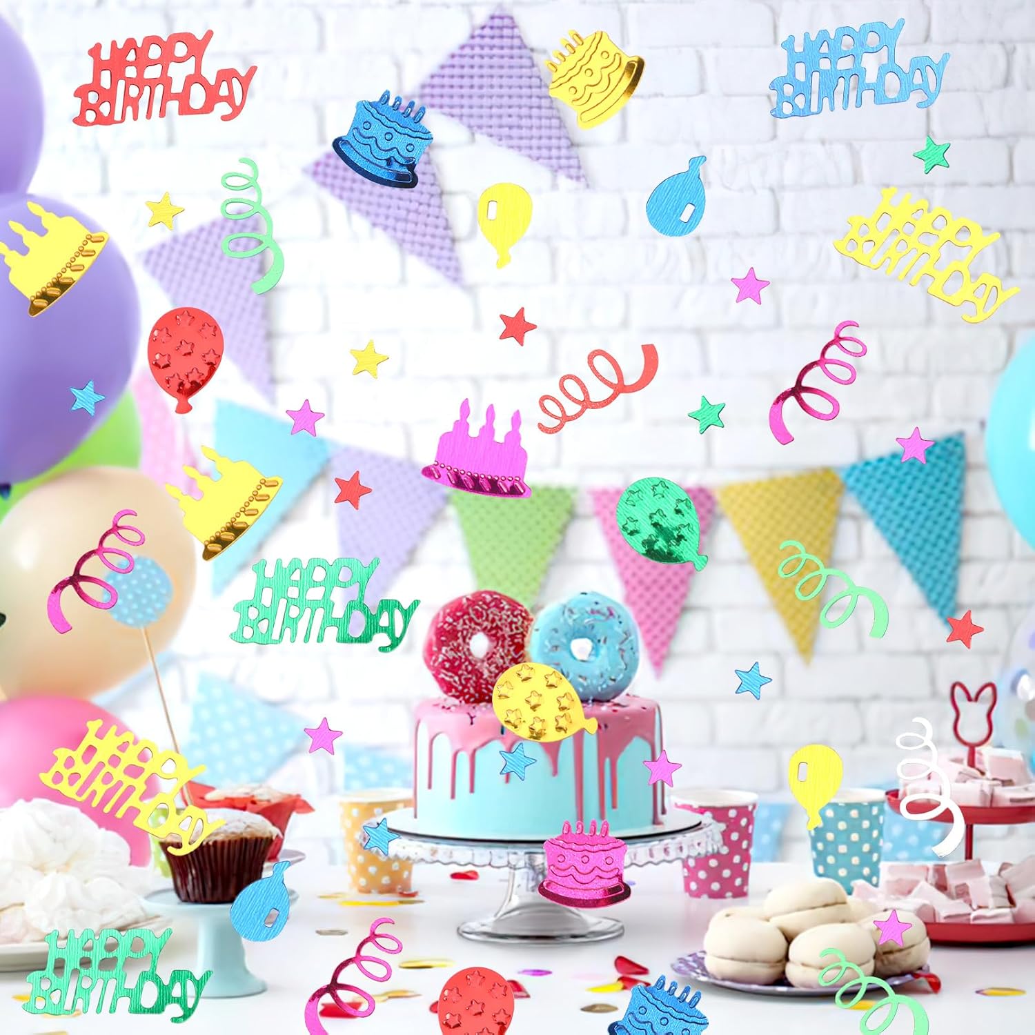 MARFOREVER Happy Birthday Glitter Confetti, Birthday Party Metallic Foil Table Confetti Multicolor Cake Balloon Sprinkles Table Centerpiece for Baby Shower Party Decorations