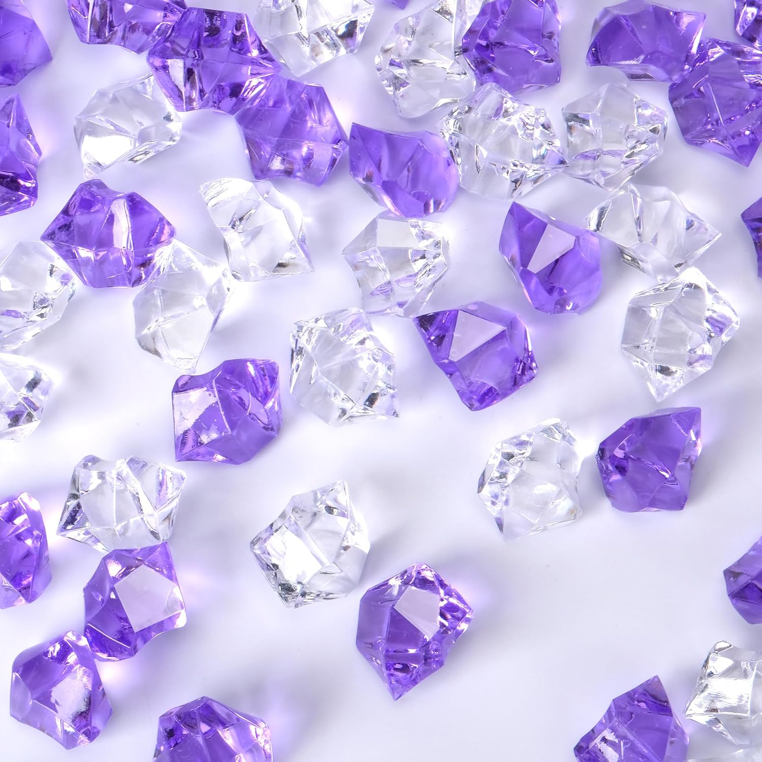 Acrylic Crushed Ice Rocks, Babenest 150 PCS Fake Crystals Plastic Ice Cubes Diamonds Gems for Vase Fillers, Home Decoration, Table Scatter, Event, Wedding, Arts & Crafts (Purple/Clear)