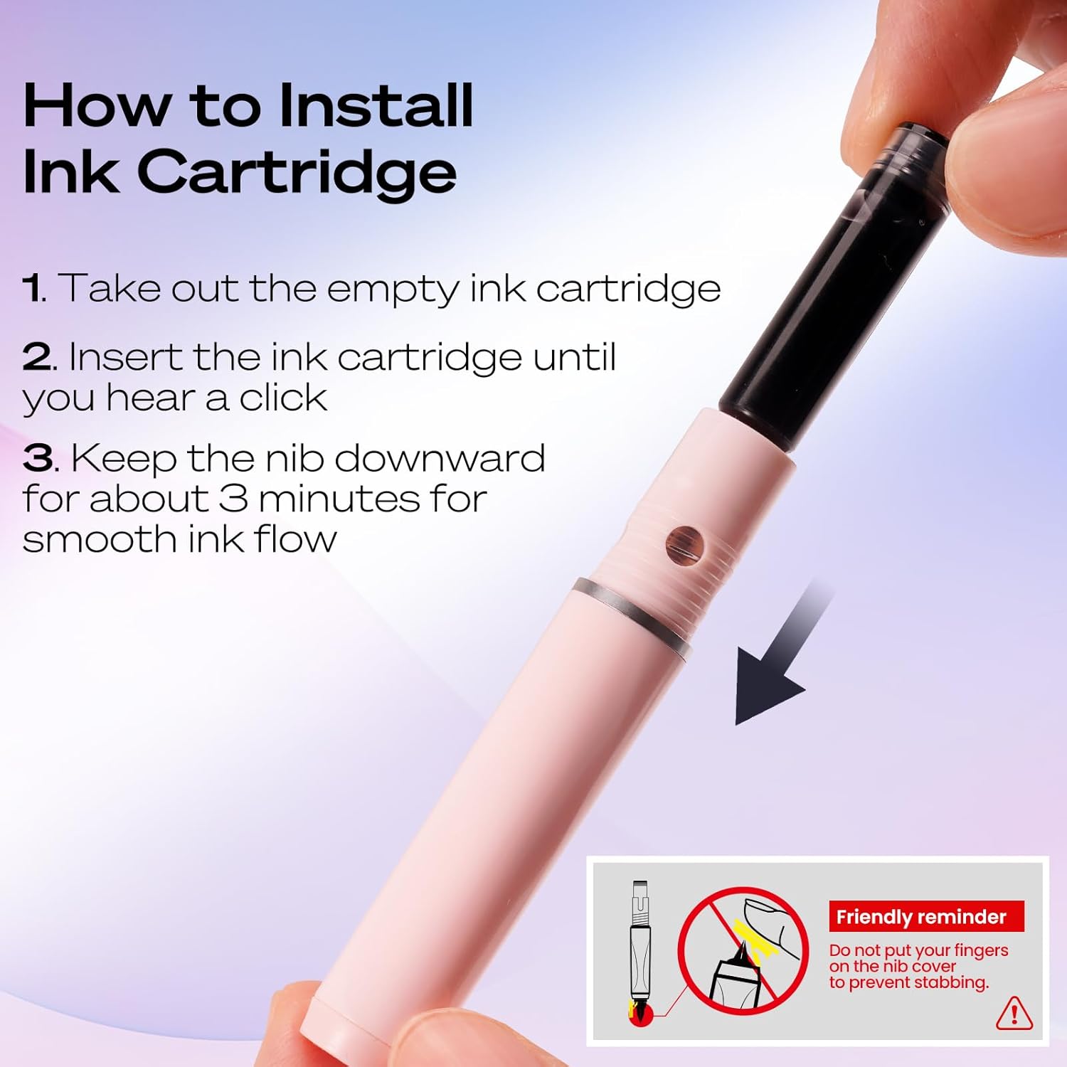• Fine nib black ink, 1 retractable fountain pen includes 5 cartridges