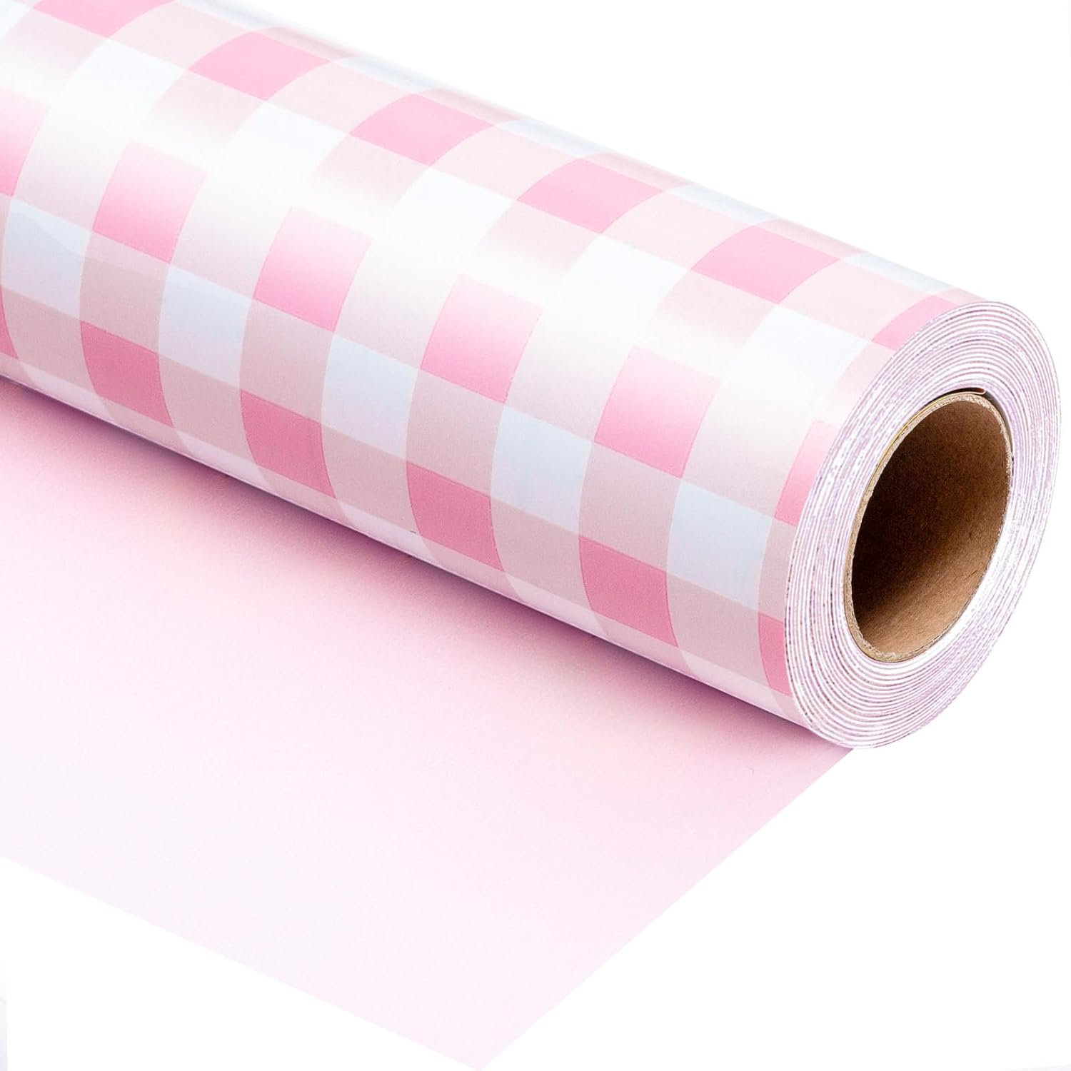 • Wrapping Paper: Features a stylish pink checkerboard pattern, making your gift wrap stand out and look extra special. The back has grid lines for easy cutting and less waste
