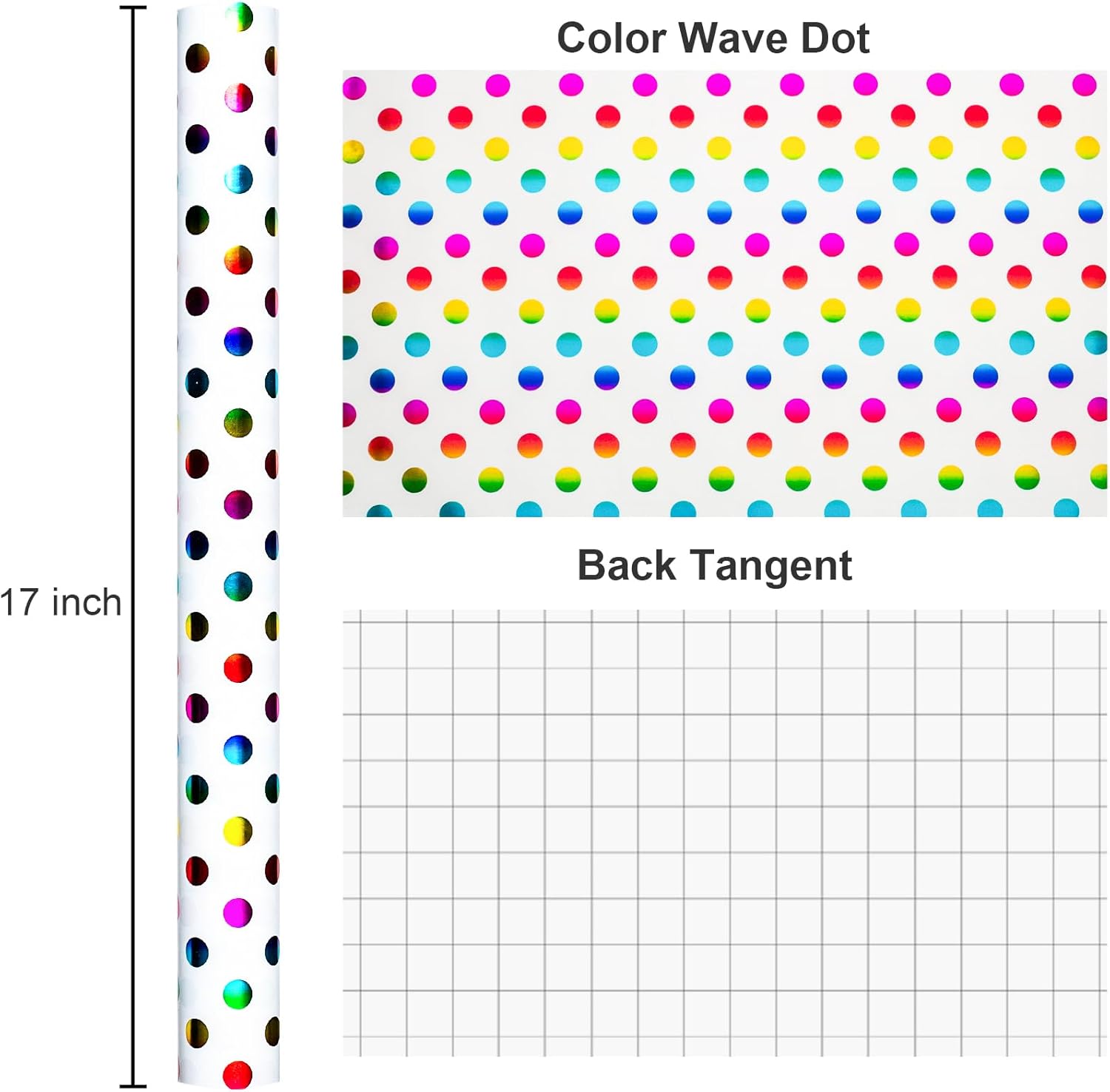 • Rainbow Wrapping Paper: Classic rainbow polka dots add a fun, unique touch to your gifts. The back includes grid lines for easy cutting and less waste