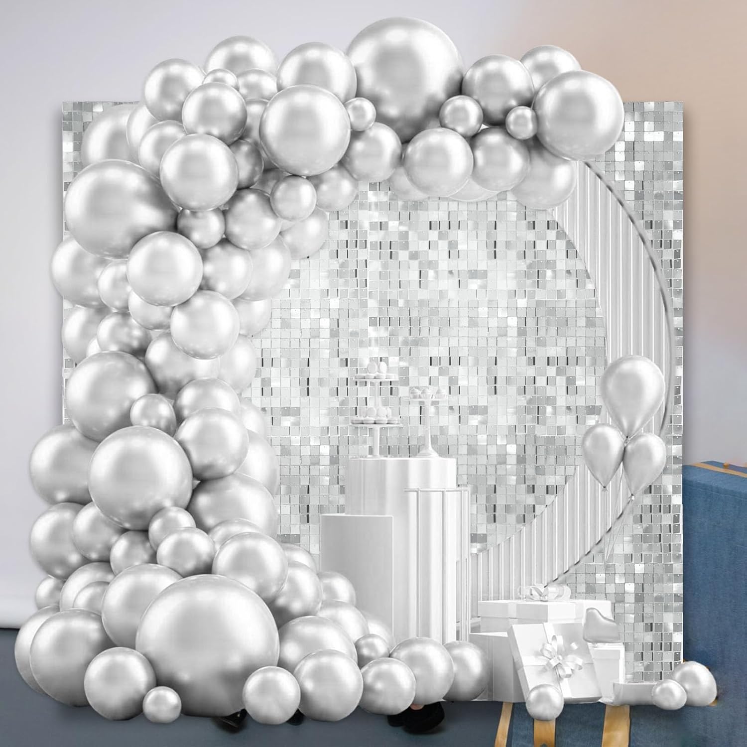• 【Shimmer Wall Backdrops】The sequins of the silver glitter wall panels will move with the wind and sparkle when the light hits them. You can match it with any balloon, wall, outdoor or indoor backdrop to a fantastic shiny photo backdrop, creating a nice shiny atmosphere for your party.