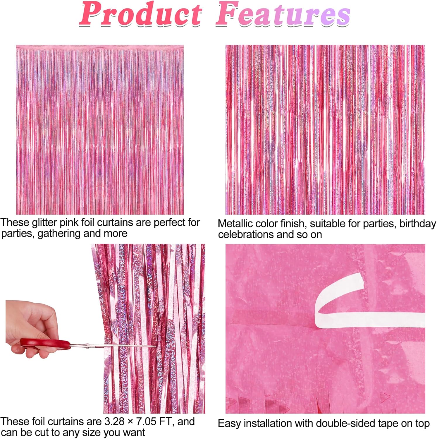 • Material: These pink foil curtains are made of 23 μm PET material, which is tear-resistant and colorfast, suitable for your birthday photo booth props.
