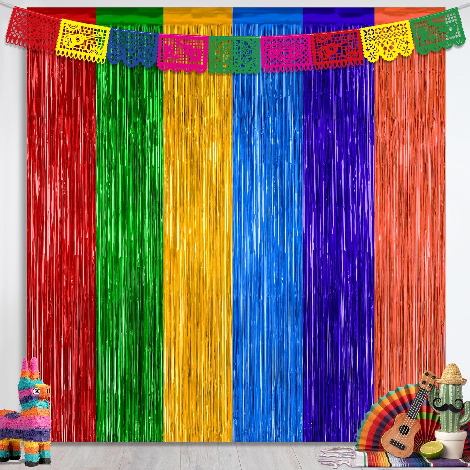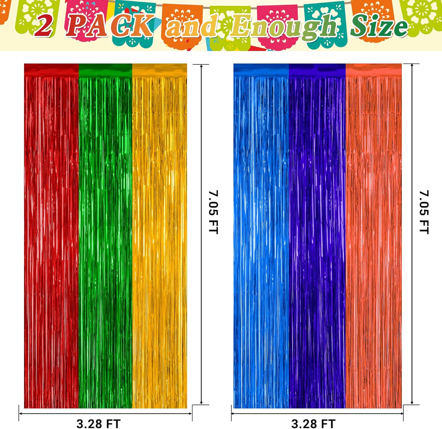 • Package Includes: This set includes 2 pcs rainbow foil curtains in Mexican colors, each measuring 3.28 ft x 7.05 ft, feel free to cut them to your desired length.