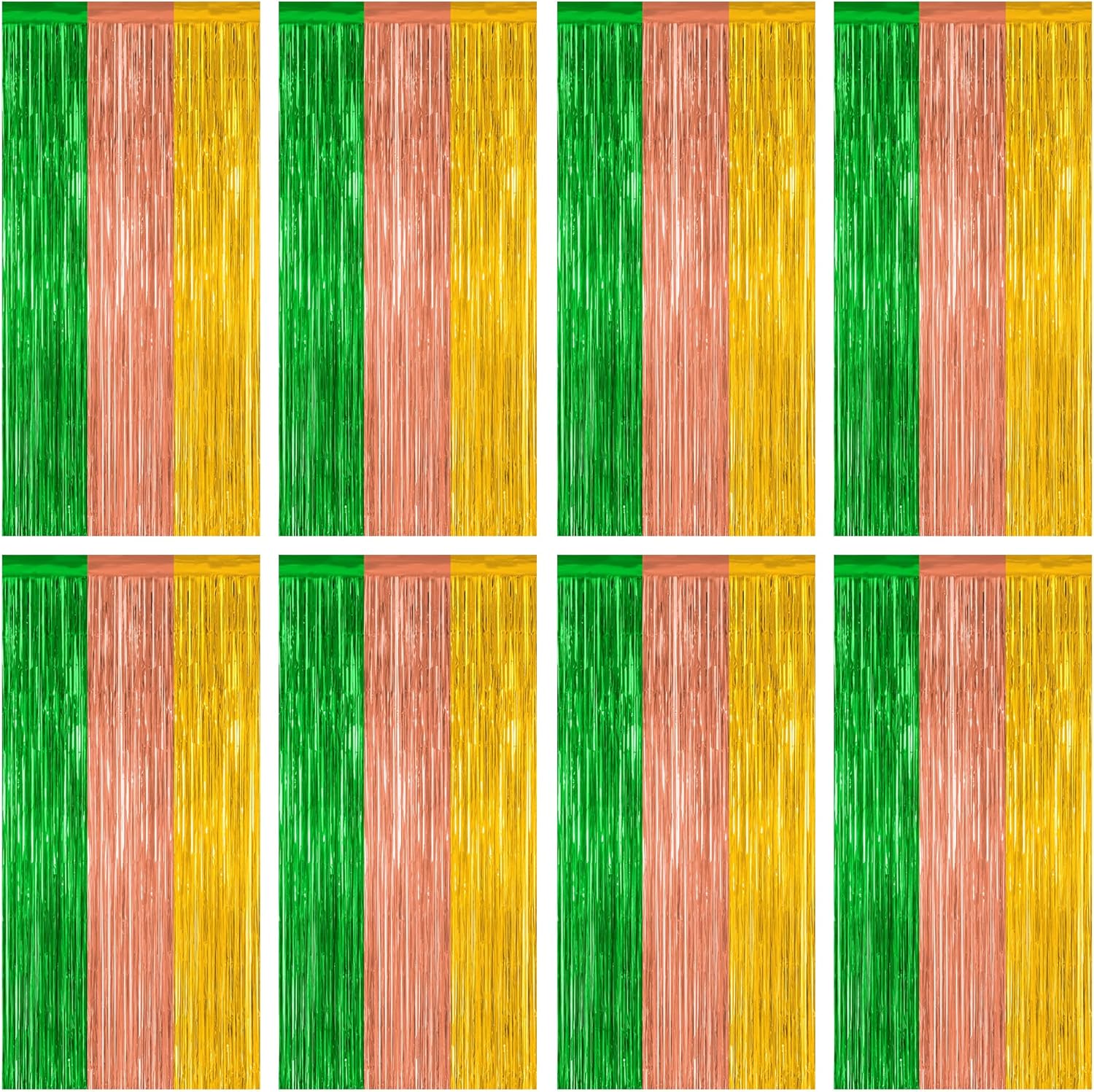 • Package Includes: This set includes 8 pcs Hawaiian foil curtains consisting of green, brown and yellow colors, each measuring 3.28 x 7.05 feet and can be cut to your desired length.