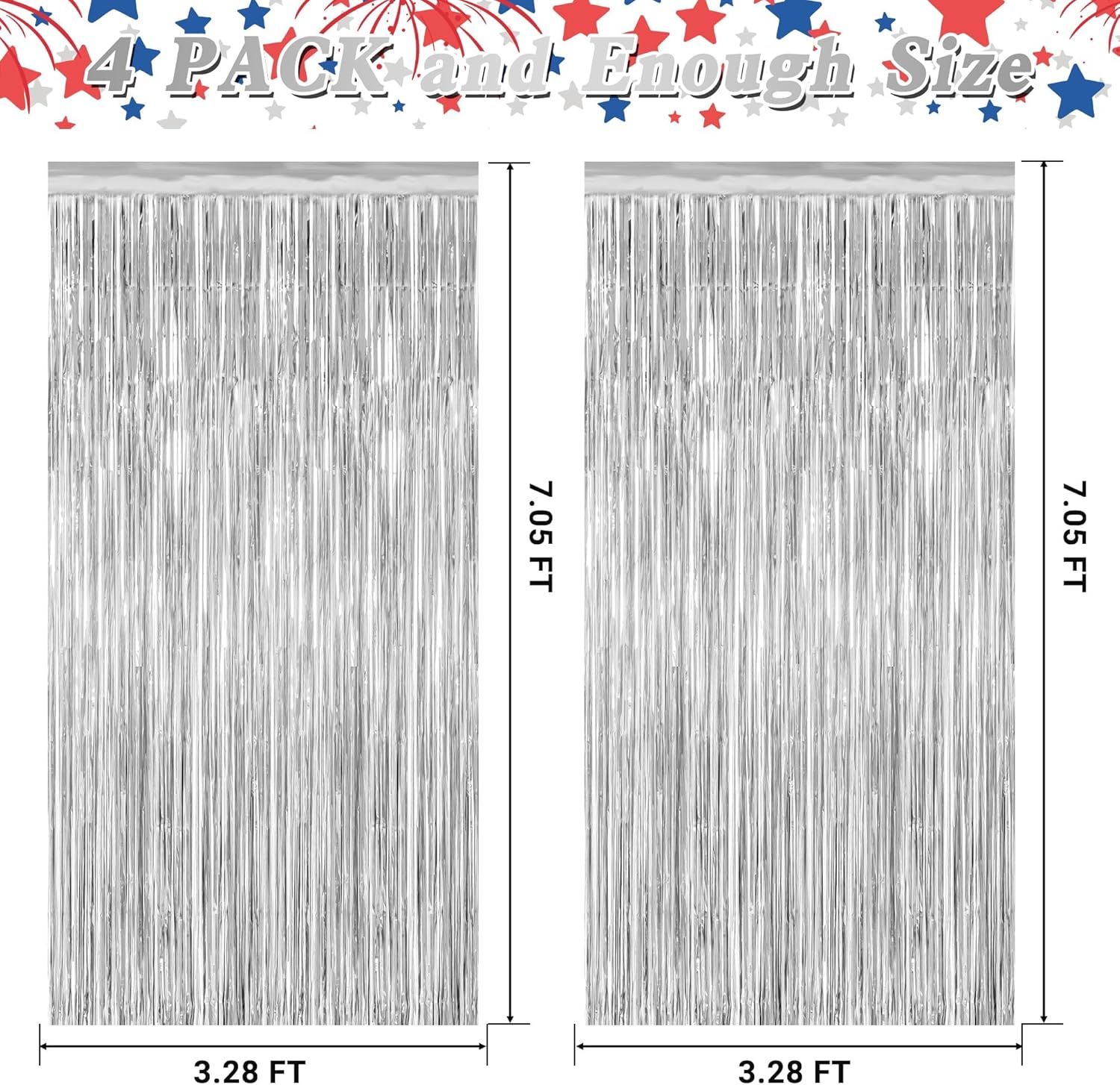 • Package Includes: The set contains 4 pcs silver fringe backdrop, each measuring 3.28 x 7.05 feet. These oversized backdrop curtains can be easily trimmed to any desired length to fit your space.