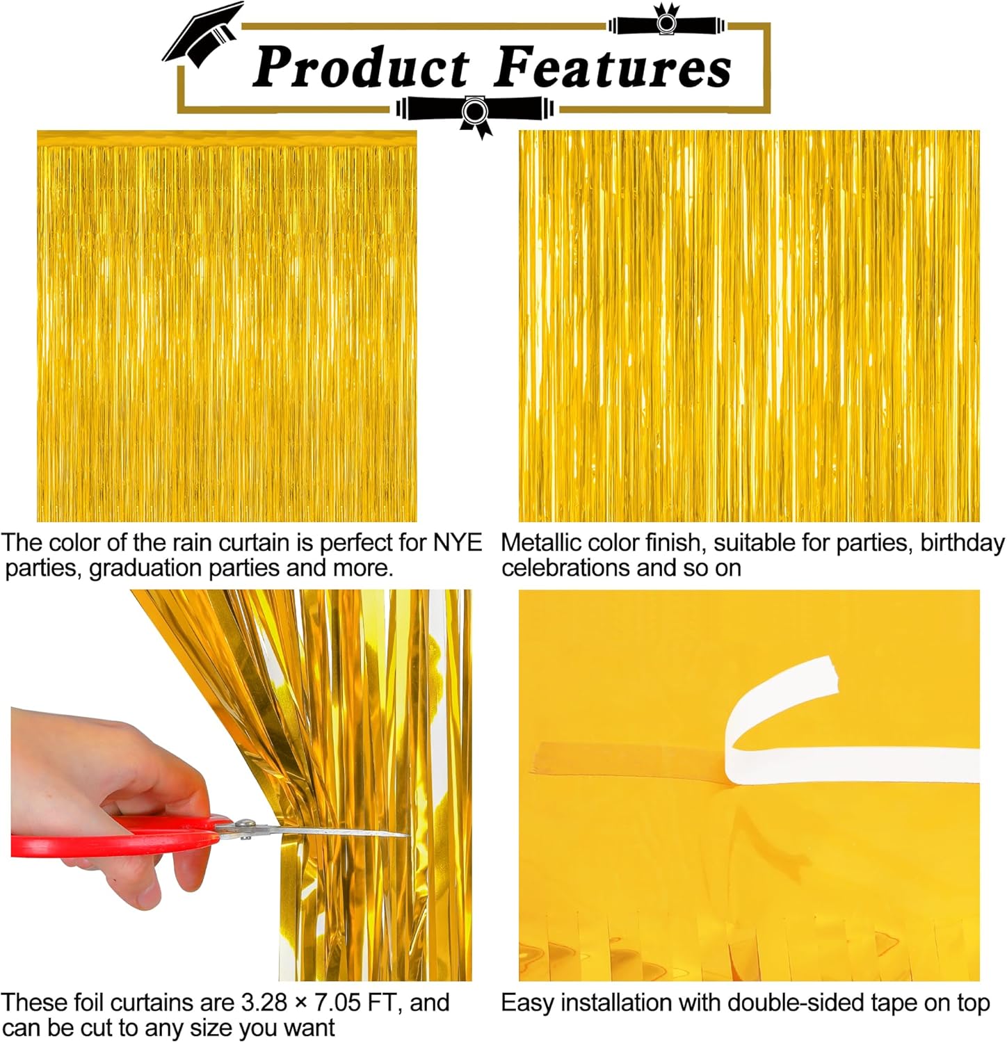 • Package Includes: This set contains 4 pack gold fringe backdrop, each measuring 3.28 FT x 7.05 FT, oversized design allows free cutting according to your needs.