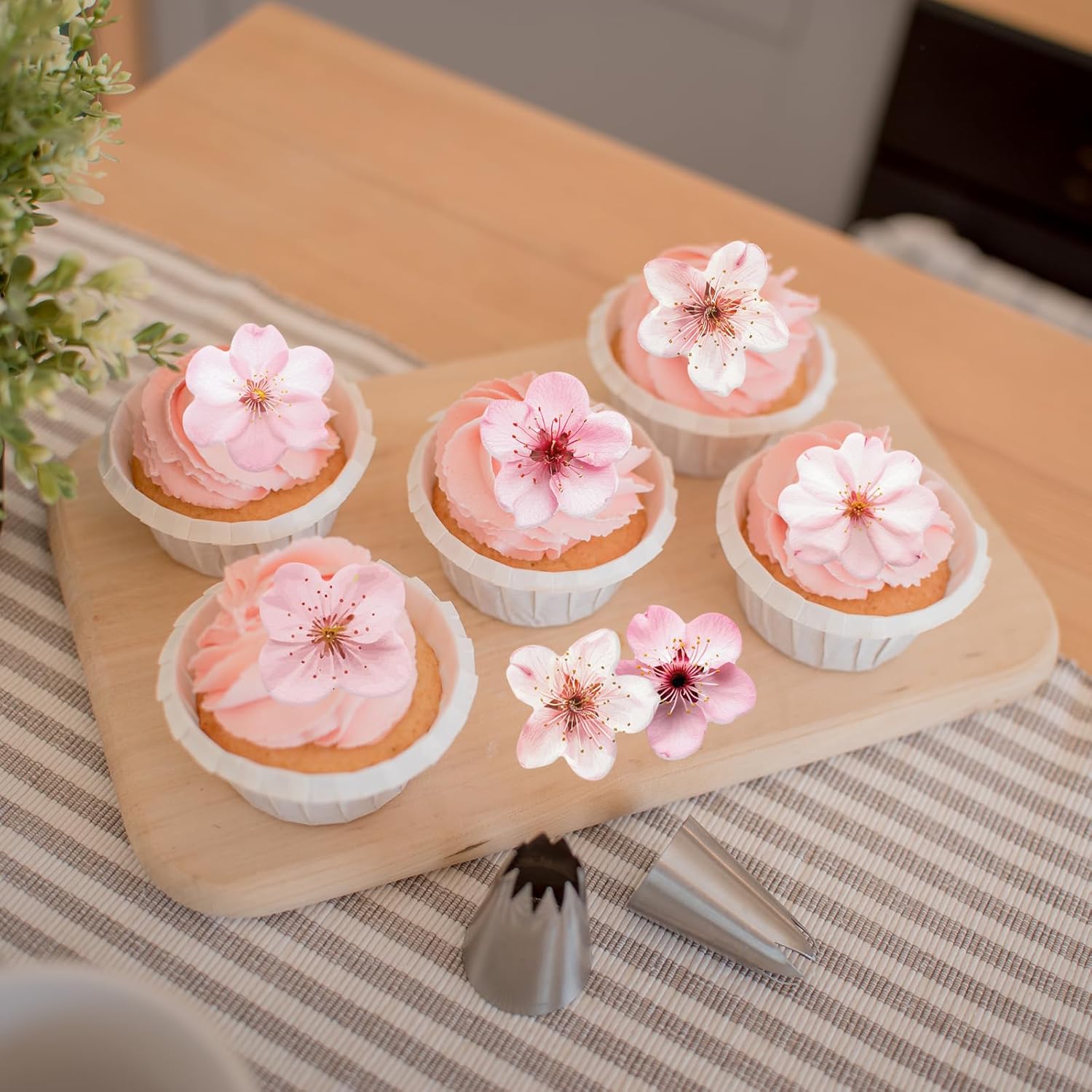 • High Quality Material: Fyeoxle edible cherry blossoms flowers Cupcake Toppers are made of high quality wafer Rice Paper and edible ink, allowing them to stand effortlessly in both buttercream and standard icing