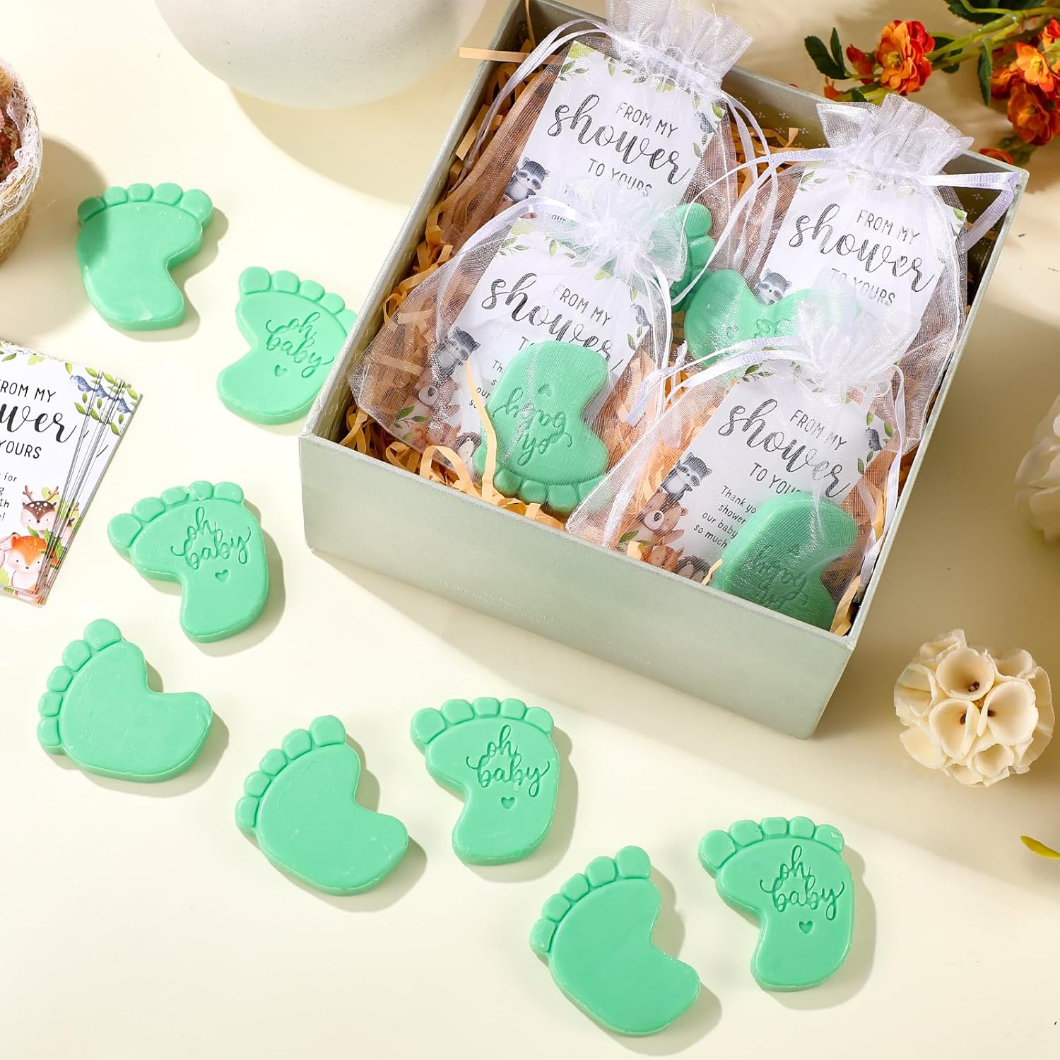 50 Sets Baby Shower Soap Favors for Guests - Mini Handmade Footprint Scented Soap with Thank You Cards and Organza Bag, Party Gifts for Gender Reveal Baptism Shower(Light Green)