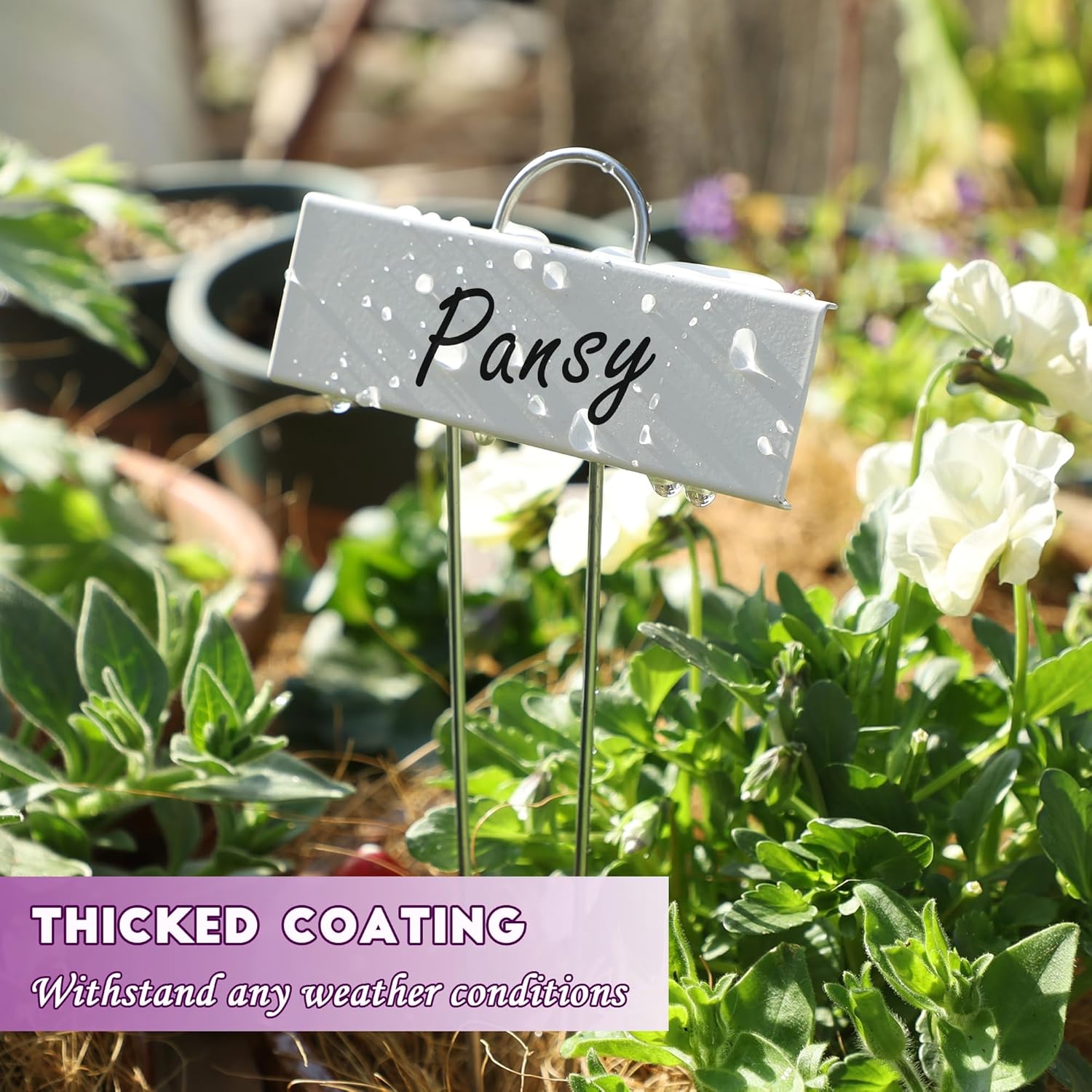 • ♥ 30-Pack Metal Plant Labels: Our set of 30 metal plant labels are made of galvanized iron, can withstand any weather conditions and the color will never change or fade. Note: Don’t scratches the surface and no engraver, it is easy to rust if the coating scraped off.