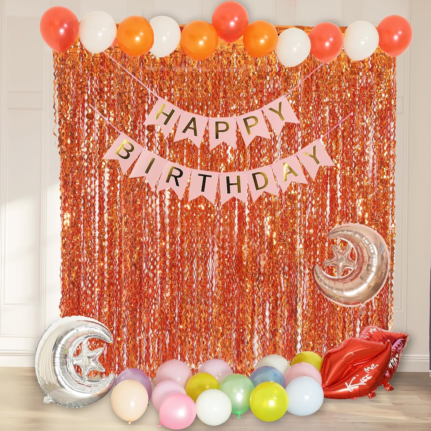 • Easy to Use: The orange foil curtain backdrop has double-sided tape on the top of the back,please peel tape off would be very easy to paste on smooth surfaces such as wall,window,table,door or anywhere you like