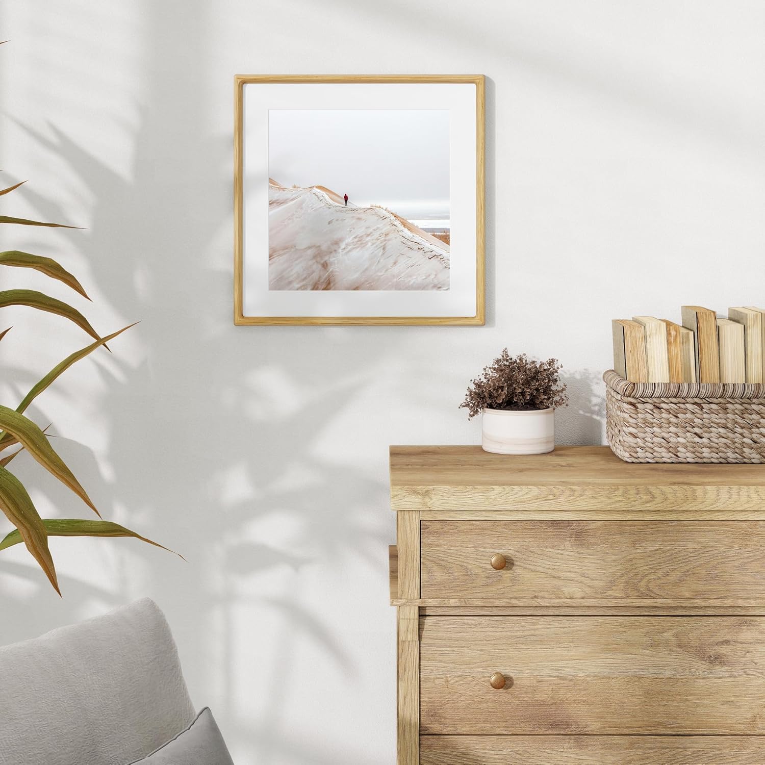 16x16 Picture Frame USA-Sourced Natural White Oak Wood Solid Original Wood Photo Frame Rounded Corner with Mat to 12x12 Picture Display with Real Glass Family, Wedding Picture, Photo, Certificate