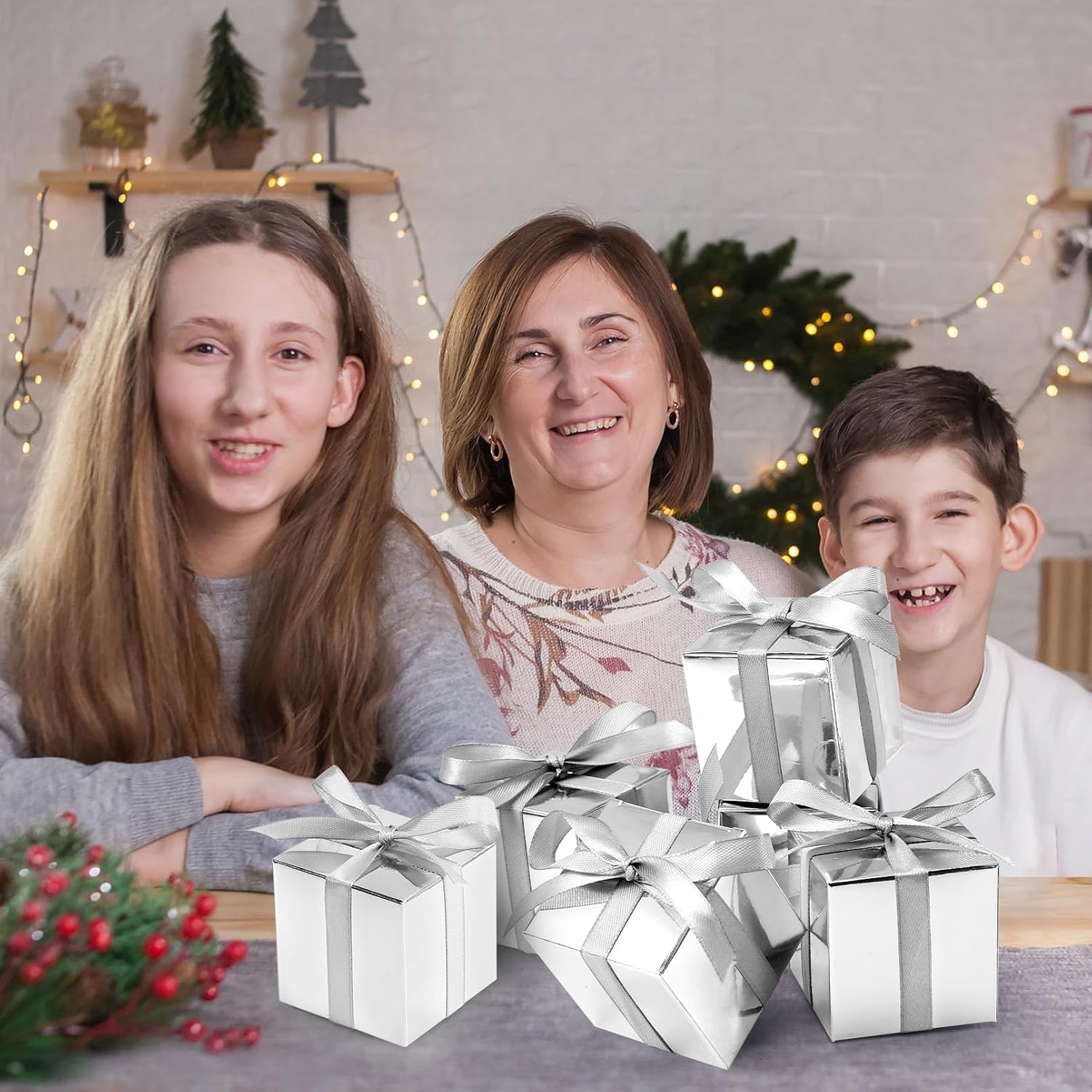 COCPOK 50 Pack Silver Gift Boxes, 2x2x2 inch Gift Box, Small Candy Boxes with Lids and Ribbons, Paper Favor Box for Wedding Bridal Shower Baby Shower Birthday Party