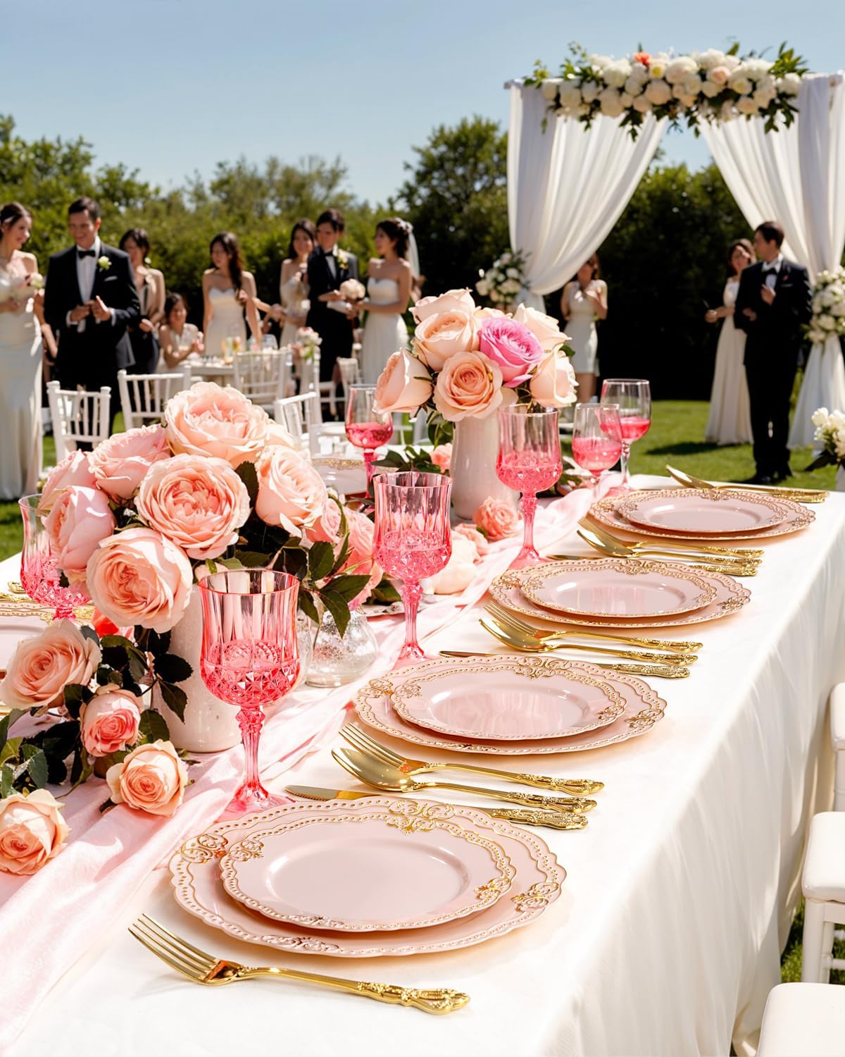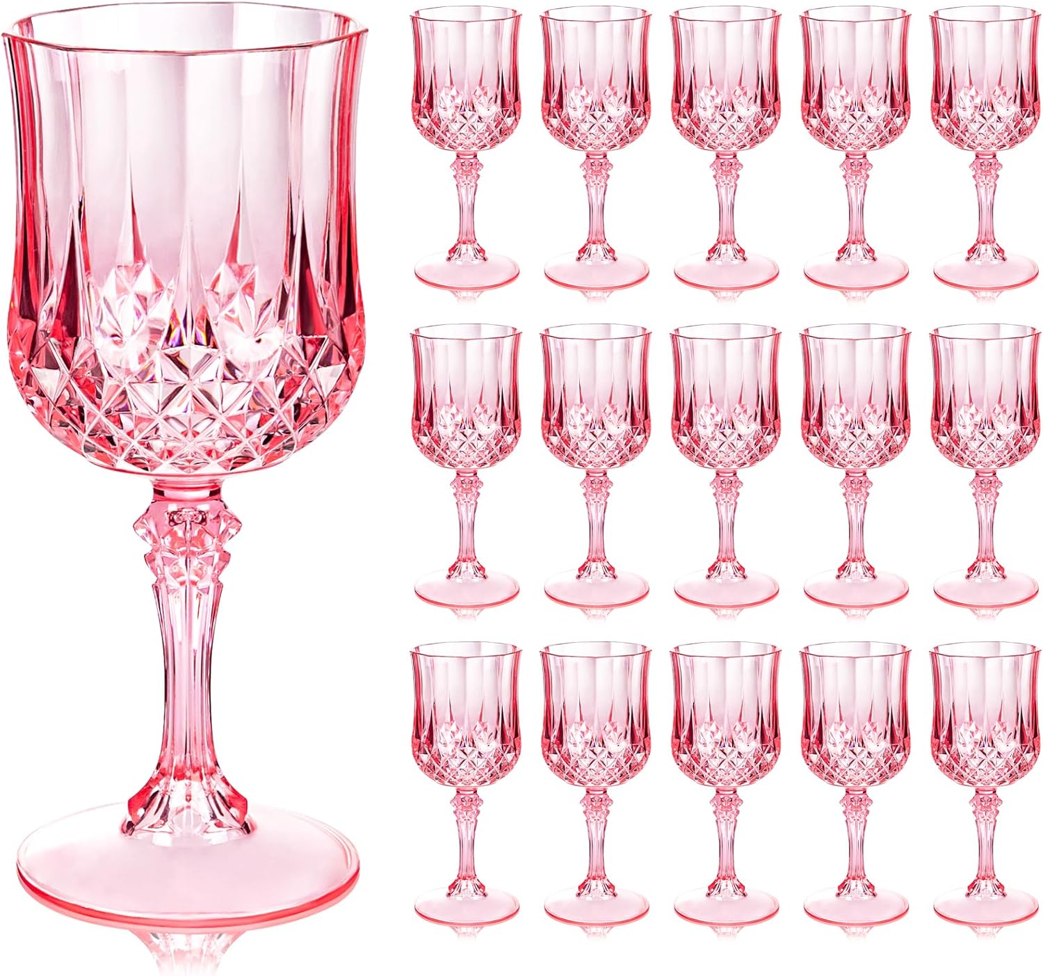 Ciaell 24PCS Pink Plastic Wine Glasses - 7 Oz Plastic Goblets for Party - Pink Vintage Drinking Glasses - Disposable Water Goblets Set for Wedding, Bar, Wine, Beer, Juice, Cocktail, Whiskey