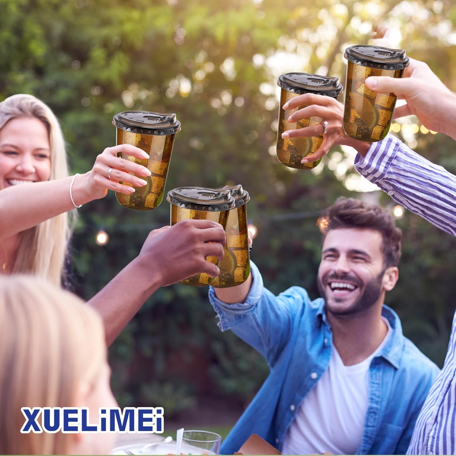 16oz Disposable Stemless Glasses With Strawless Sip Lids,PET Disposable Drinking Cups,Clear Plastic Wine Glasses for Parties Birthday,Wedding,Meeting,Christmas Party Supplies (100, Black)