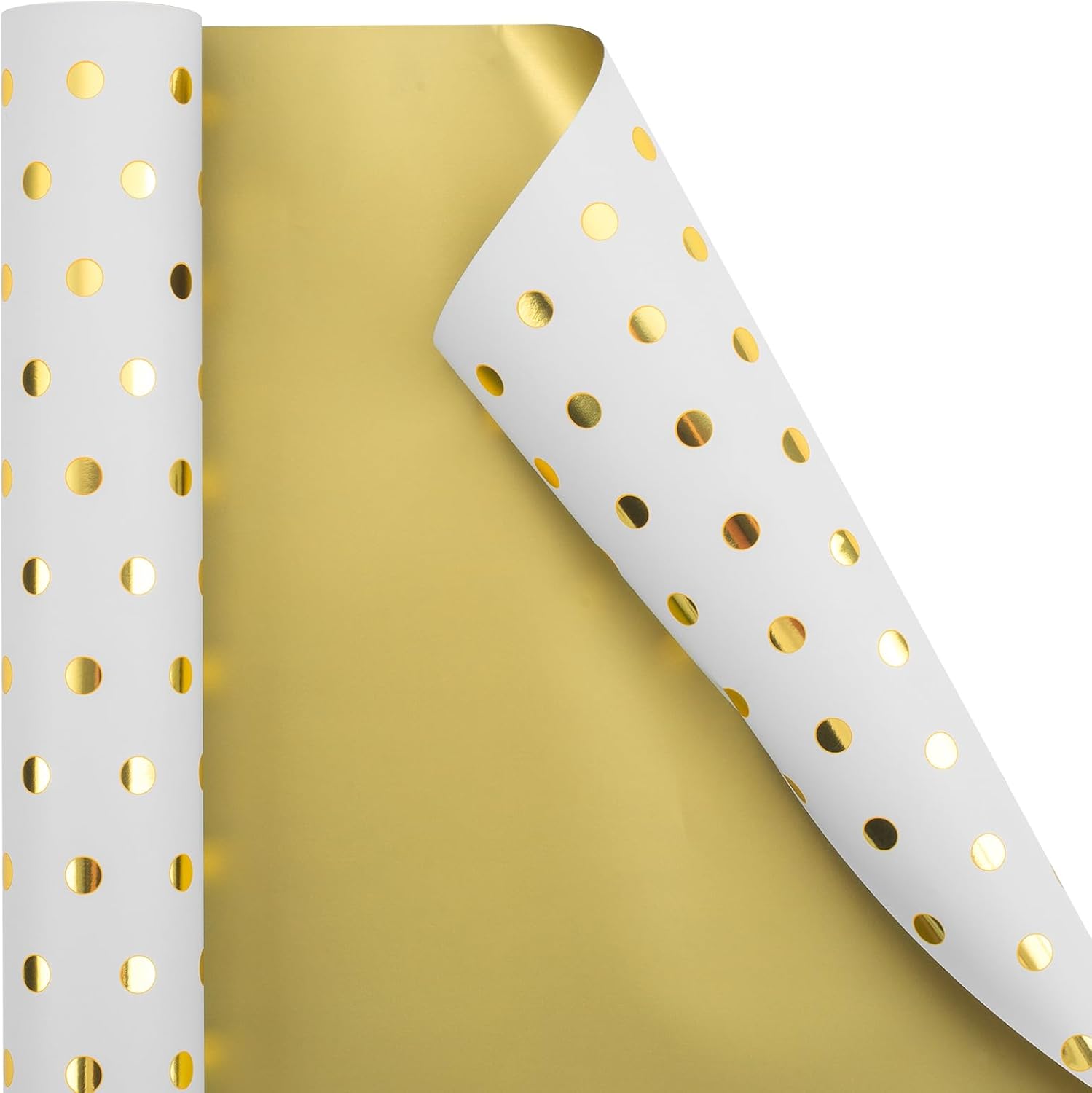 • Reversible Design: The gift wrap is the special gold foil polka dot and suitable for all kinds of packaging.One side features dazzling gold foil polka dots that catch every eye, while the reverse offers a soft, elegant gold—perfect for crafting hand-wrapped gifts that stand out.