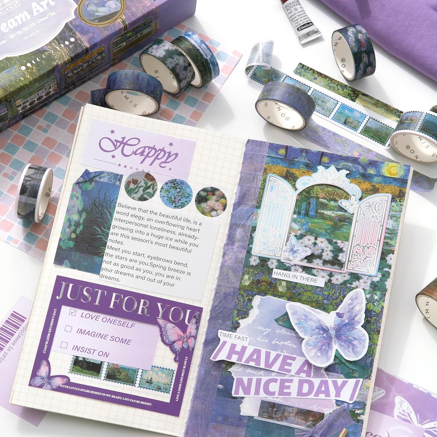 18 Rolls Washi Tape Set Art washi Tape for Crafts and Journaling Scrapbooking Supplies Scrapbook Tape Decorative washi Tape for Scrapbooking