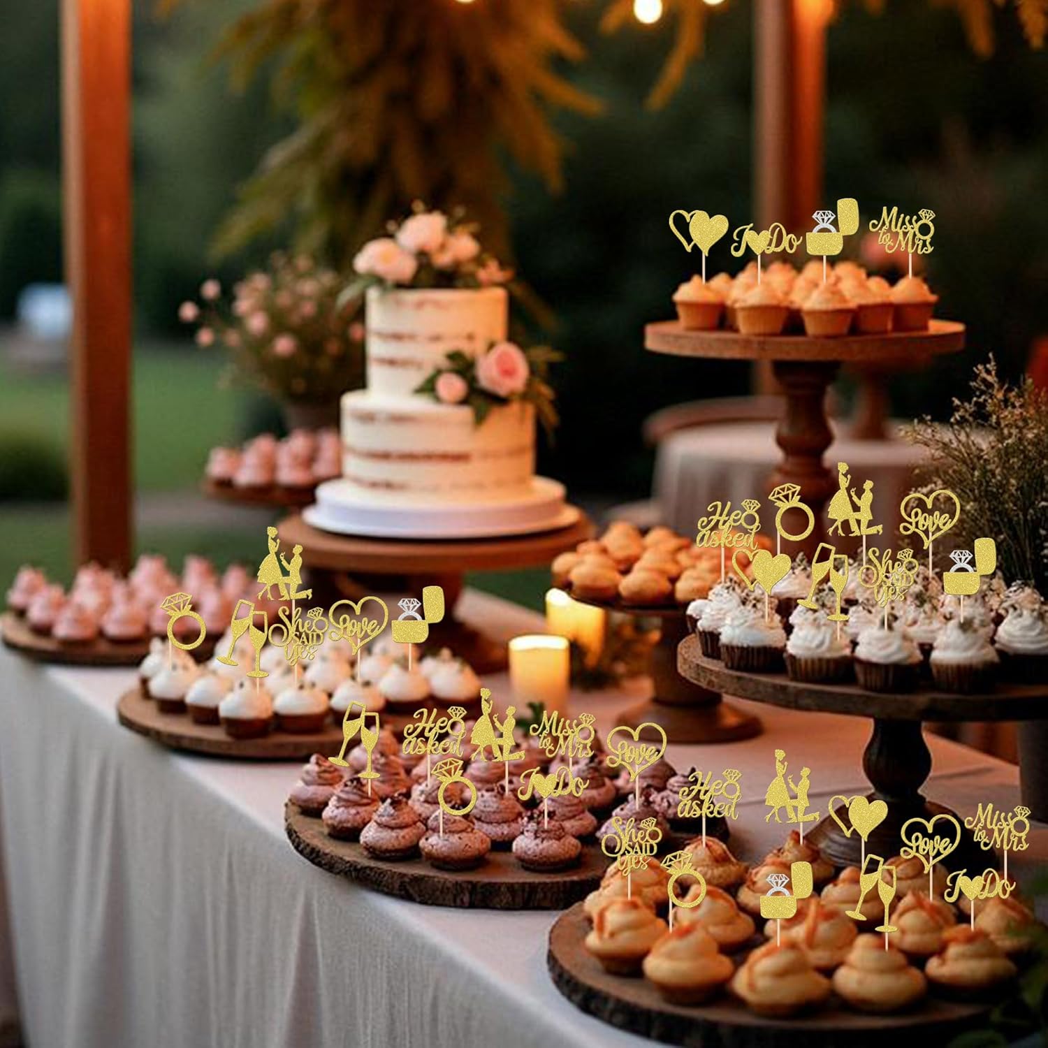 30 PCS He Asked She Said Yes Cupcake Toppers Glitter Engagement Cupcake Toppers Miss to Mrs I Do Love Heart Ring Miss to Mrs Cupcake Picks for Wedding Engagement Party Cake Decorations Supplies Gold