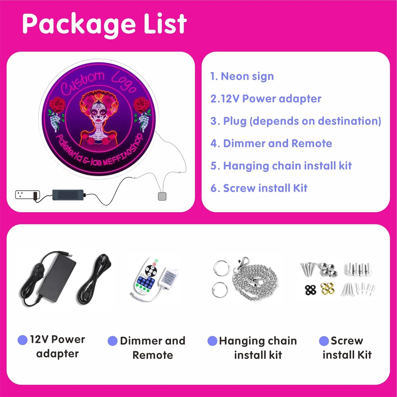 • 🛠️【Configure Neon Installation】For easy installation, mounting holes are provided on the back of each neon sign. And the neon signs are supplied with two different mounting accessories (1. in-wall screw mounting accessory, 2. gravity chain mounting accessory) for easy hanging/mounting of the neon signs on the wall or other locations.