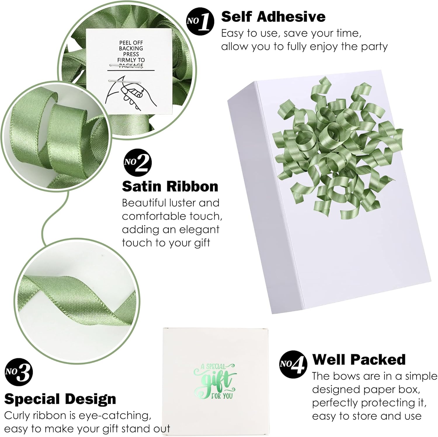 • Value Package: You will receive 8 pieces of satin gift wrap bows in the package, satisfying your daily decoration needs. After wrapping your gift, sticking the premade bows to a gift is a unique finishing touch that makes your package more sophisticated.