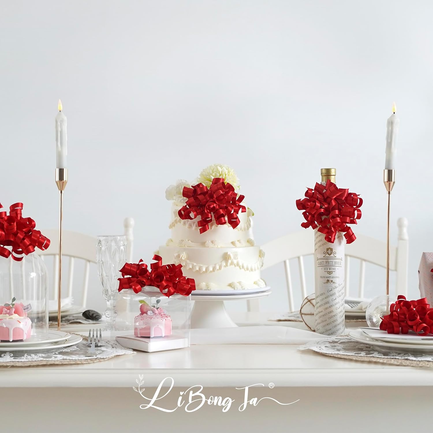 5 Inch Red Bows Curly Ribbon Bows for Gift Wrapping, Satin Bows with Double-Sided Tape, Self Adhesive Bows for Party, Wedding, Birthday Decor, Premade Bows for Crafts, Wine Glasses-8 Counts