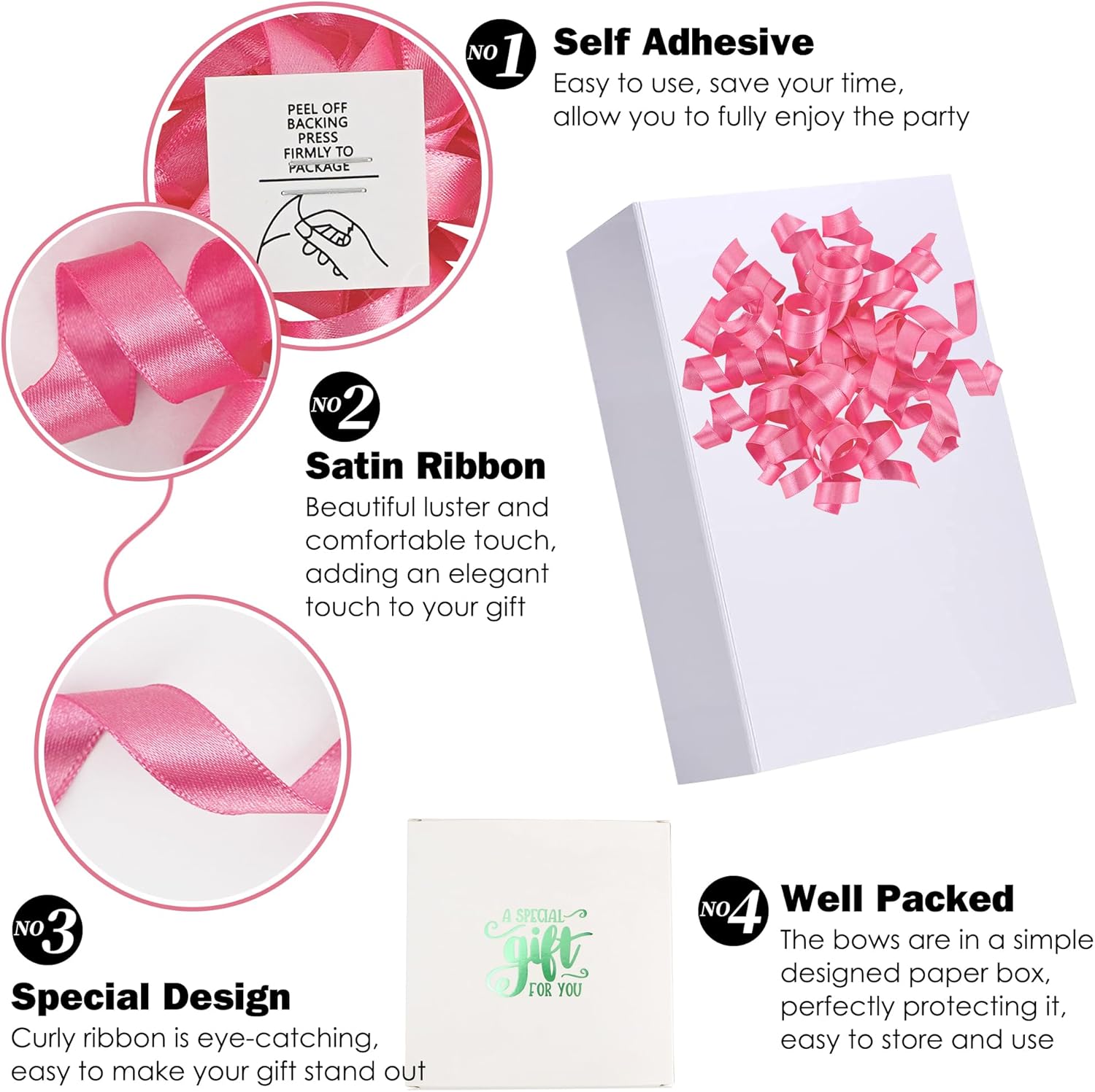 • Value Package: You will receive 8 pieces of satin gift wrap bows in the package, satisfying your daily decoration needs. After wrapping your gift, sticking the premade bows to a gift is a unique finishing touch that makes your package more sophisticated.