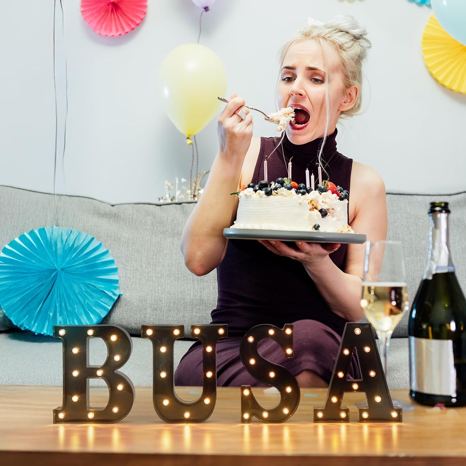 • Our Black light up letters illuminated lights are highly versatile and portable as they measure just 8.66 inches tall, 1.77 inches thick, can be hung on walls and will take 2x AA batteries so they are not too oversized and will not need to be plugged into an electrical outlet.