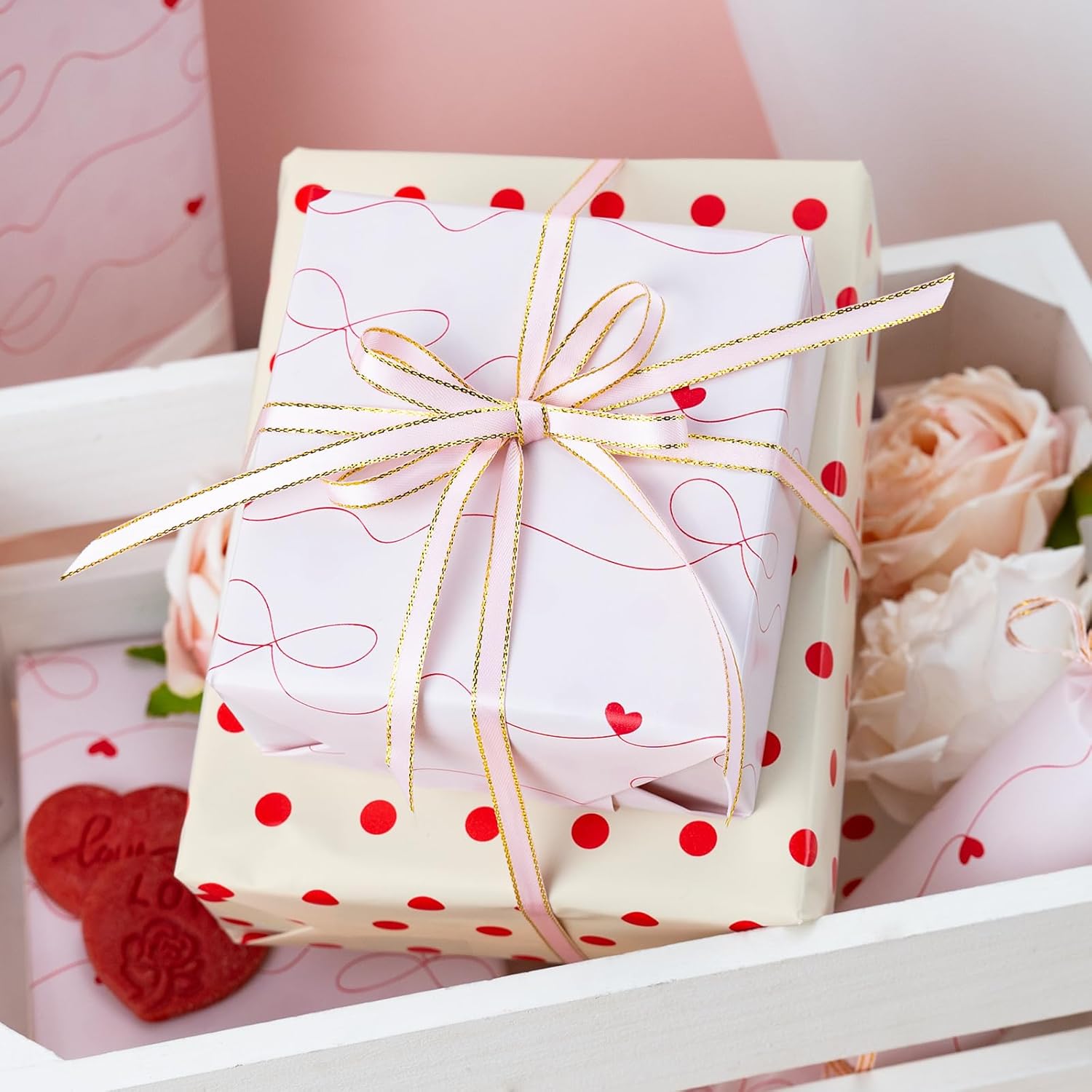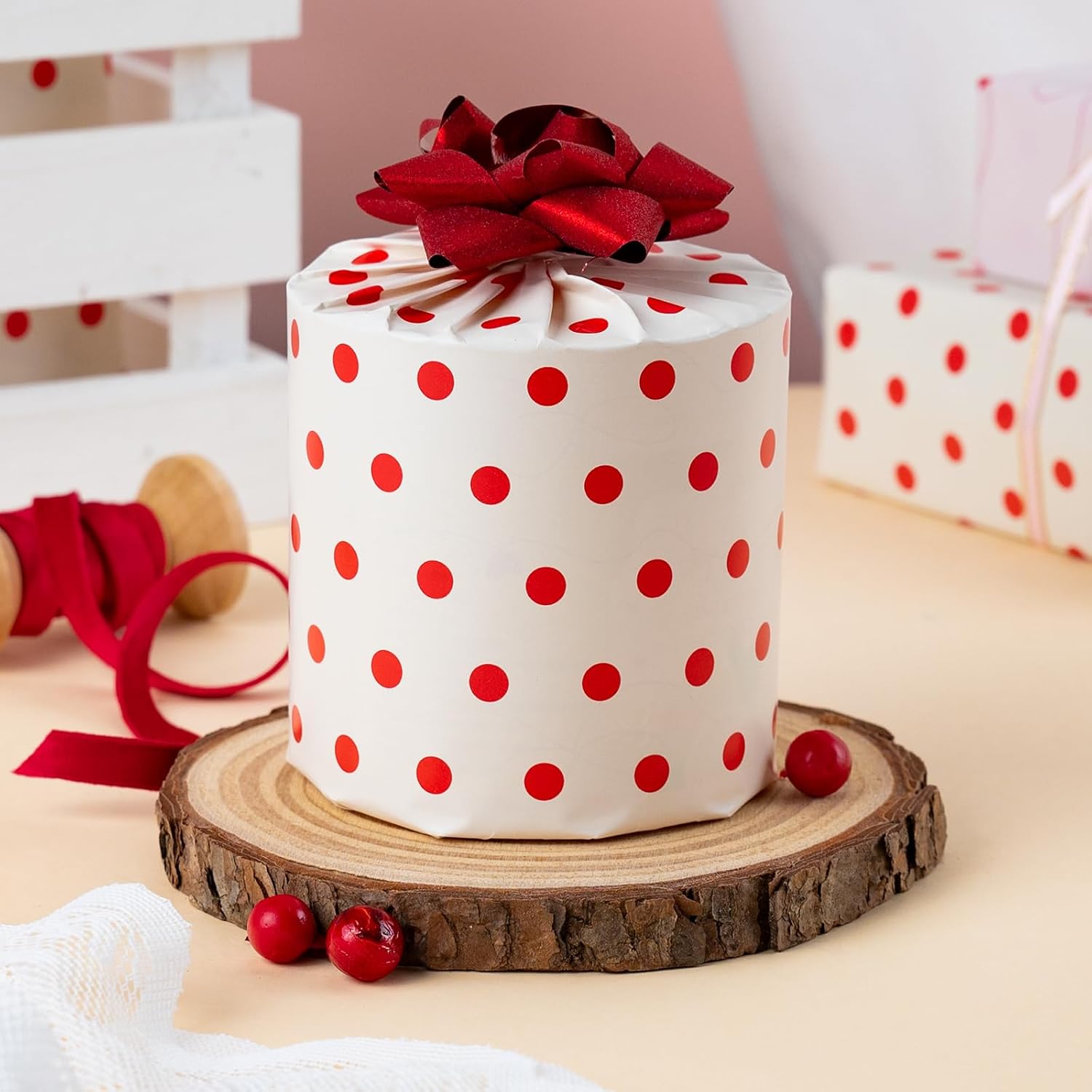 • Reversible Design: The gift wrap is the specil red polka dot and suitable for all kinds of packaging.One side features red polka dots that catch every eye, while the reverse offers a soft, elegant bowknot & heart Gift Wrap—perfect for crafting hand-wrapped gifts that stand out.
