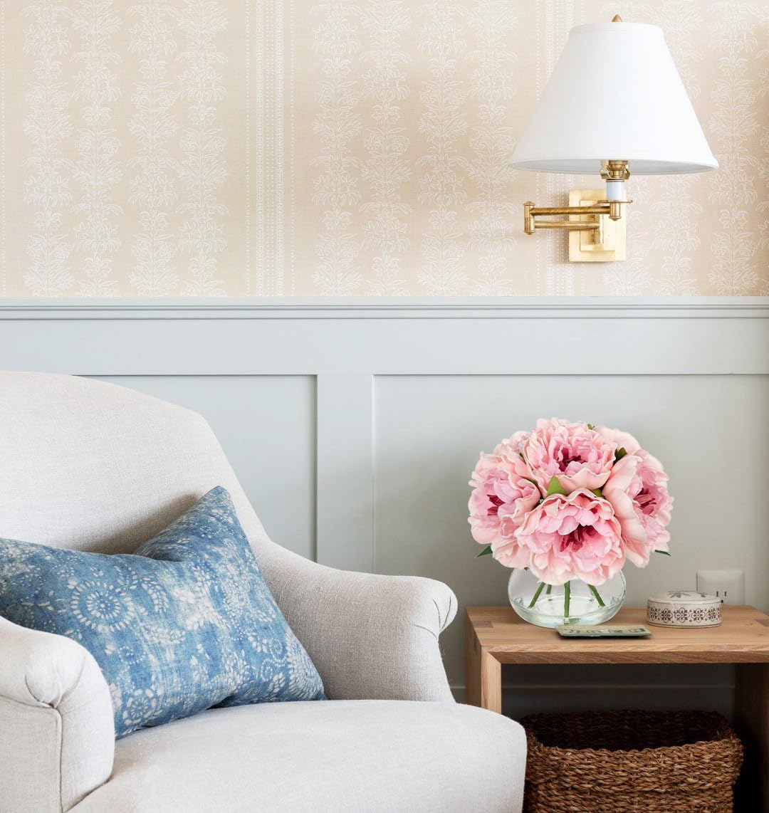 • 💐【Realistic & Elegant】Peonies artificial flowers with glass vase suits look so beautiful, unique craft design, brings different visual enjoyment to your home, create a romantic atmosphere, make you happy every day. Faux water on the vase adds to the pulchritude and realism. More realistic because of the details!