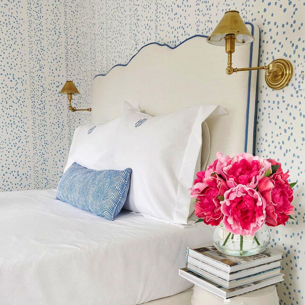• 🌷【High-Quality Materials】Are you tired of dying flowers? Then our artificial peony flowers with vivid water will be perfect for you. Fake peony flowers have 6 heads and it are made of high-quality silk, combined with exquisite production technology. Unlike fresh flowers require everyday upkeep, the peony fake flower can be placed and reusable in many settings for a long period without any care. They will remain fresh-looking and the same beautiful year after year.