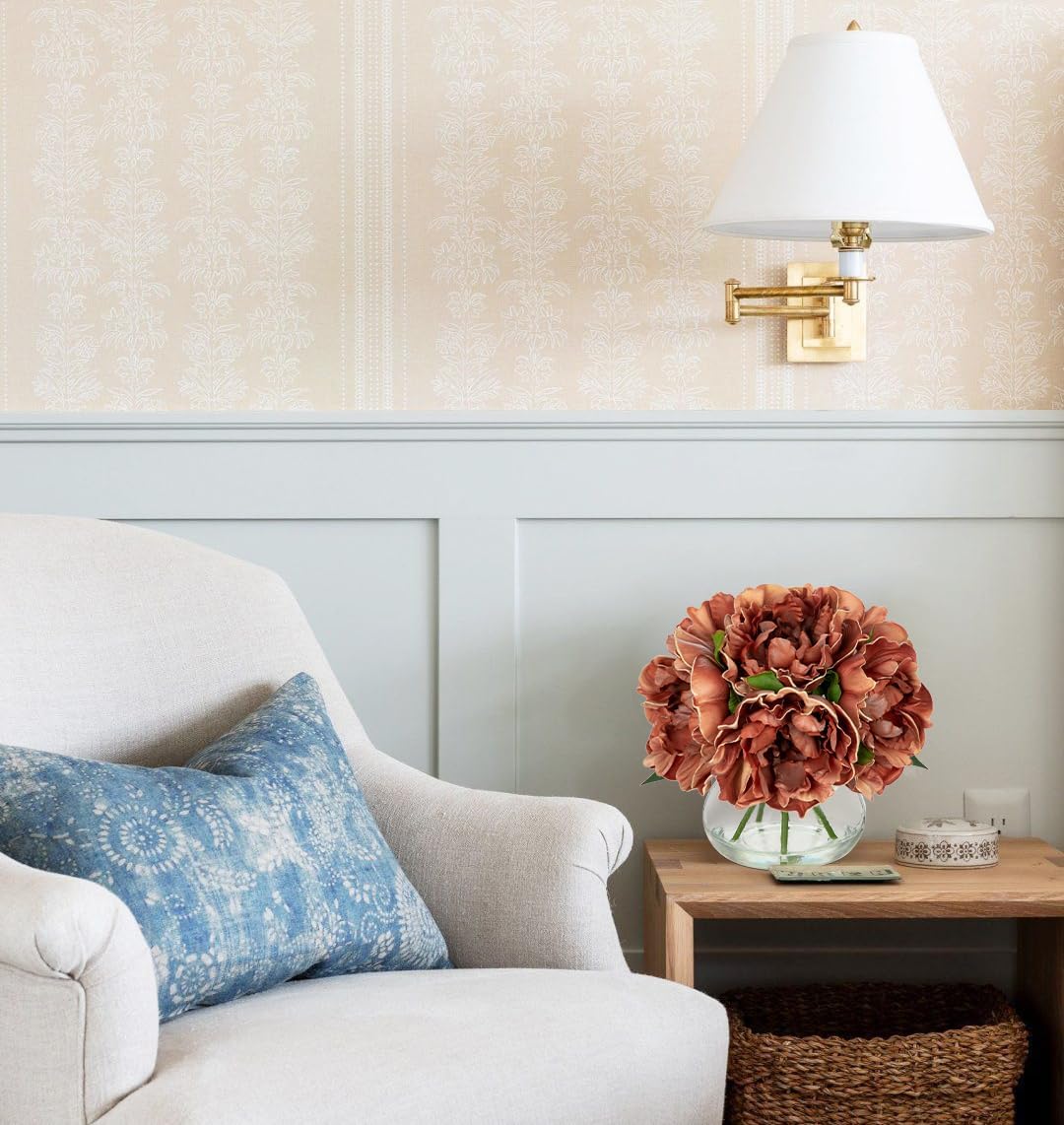 • 💐【Realistic & Elegant】Peonies artificial flowers with glass vase suits look so beautiful, unique craft design, brings different visual enjoyment to your home, create a romantic atmosphere, make you happy every day. Faux water on the vase adds to the pulchritude and realism. More realistic because of the details!