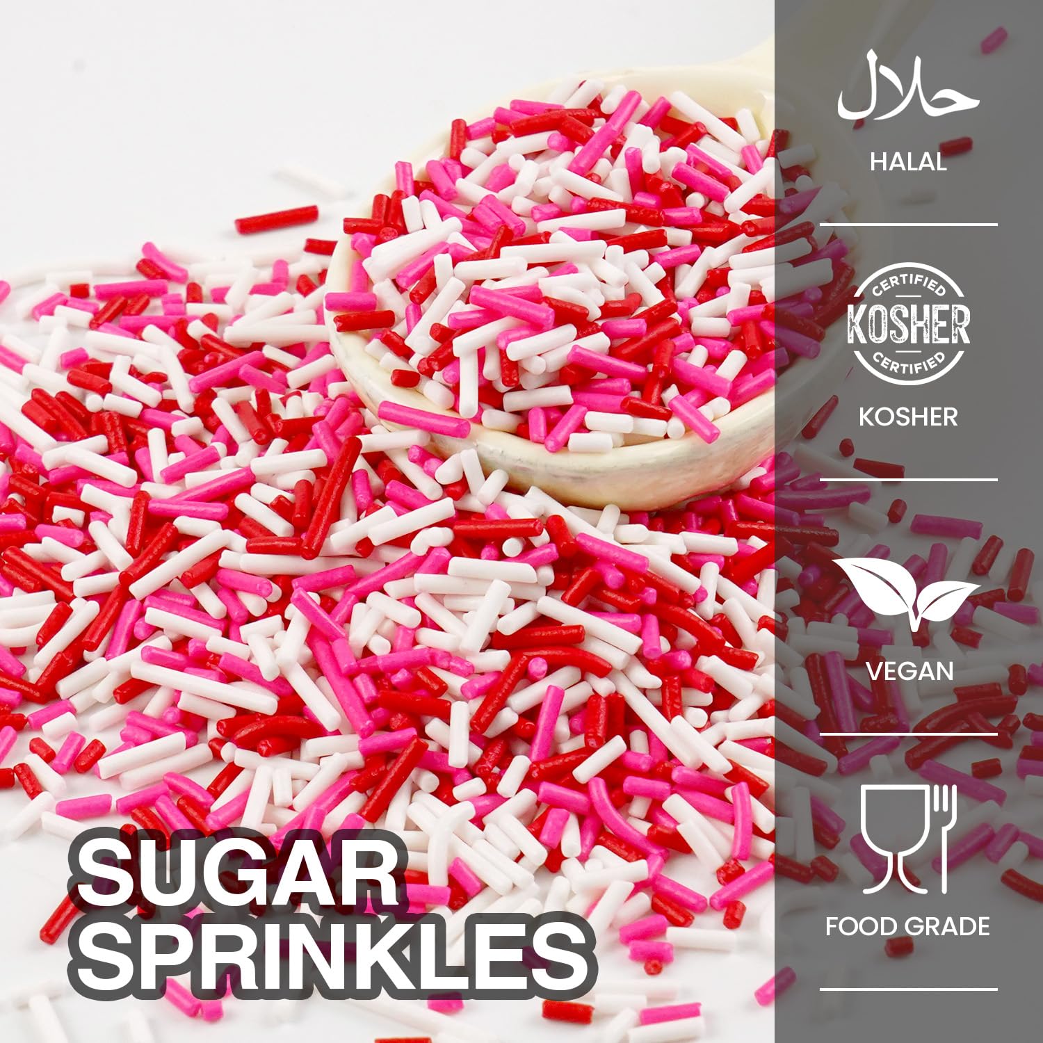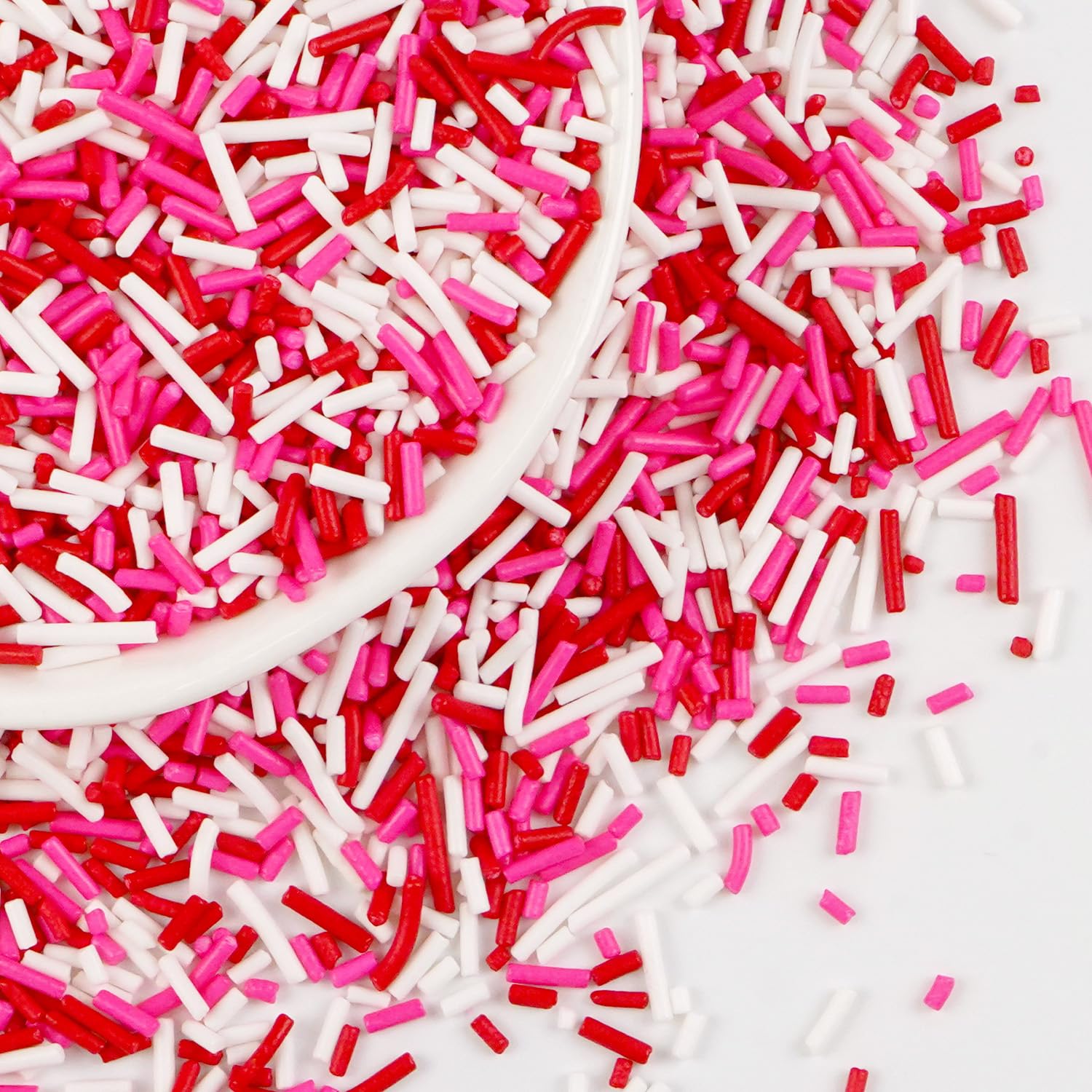 Pink Jimmies Sprinkles, Edible Sprinkles For Cake Decorating, Pink Red and White Sugar, 150g/5.29oz, Cupcake & Ice Cream Topper, Mother's Day, Valentine's Day, Wedding Party Supplies